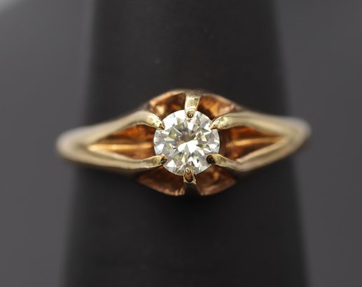 This lot consists of a beautiful ring. The ring is a size 5. The diamond measures aprox 4mm across the top which makes the diamond aprox. .25 of a carat.