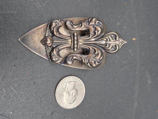 Solid sterling silver, by prominent silversmith and watch/clock maker HOWARD & CO. It dates to 1900-1910, with an Art Nouveau aesthetic. In the form of a fleur de Lis, highly stylized with high relief decoration. During this period, HOWARD was a direct competitor with Gorham and Tiffany & Co. in the luxury market. A great example!