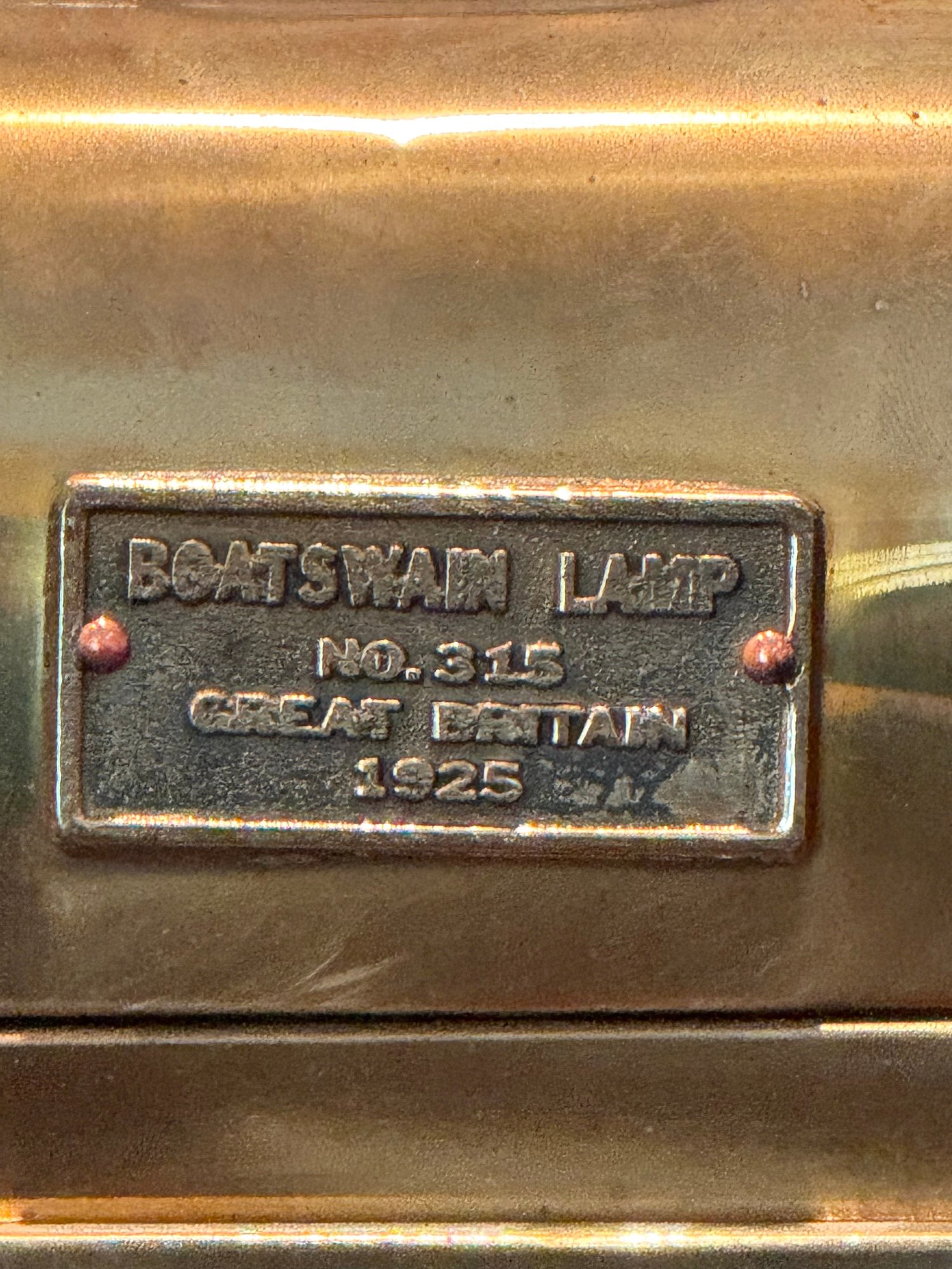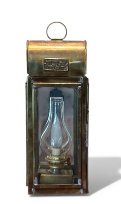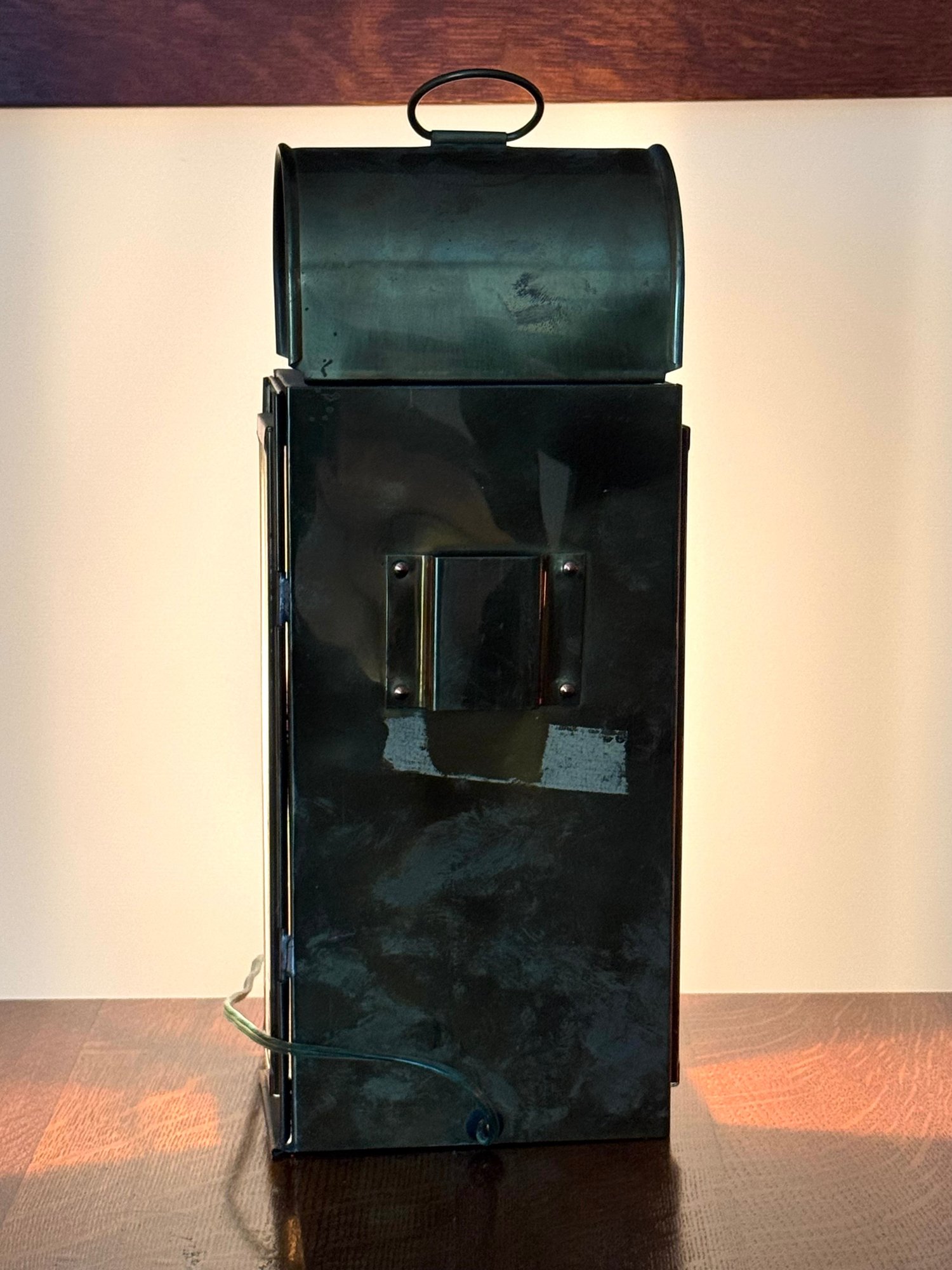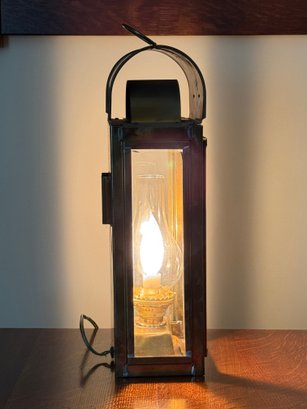 Utterly charming vintage nautical oil lamp that has been electrified. Made of brass with a glass window panels.