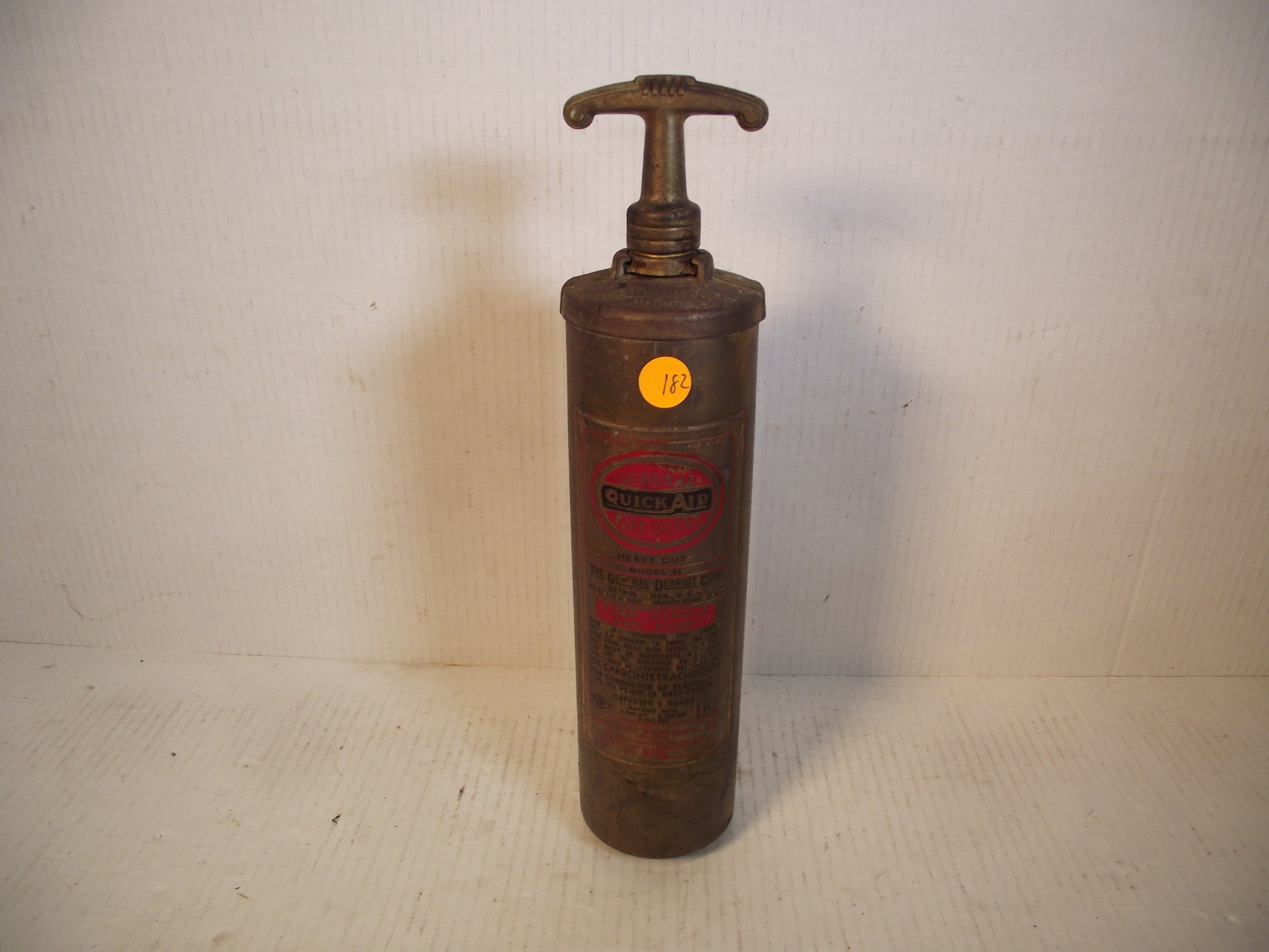 ANTIQUE BRASS FIRE EXTINGUISHER GENERAL QUICK AID FIRE GAURD. PLEASE SEE PHOTOS FOR CONDITION.