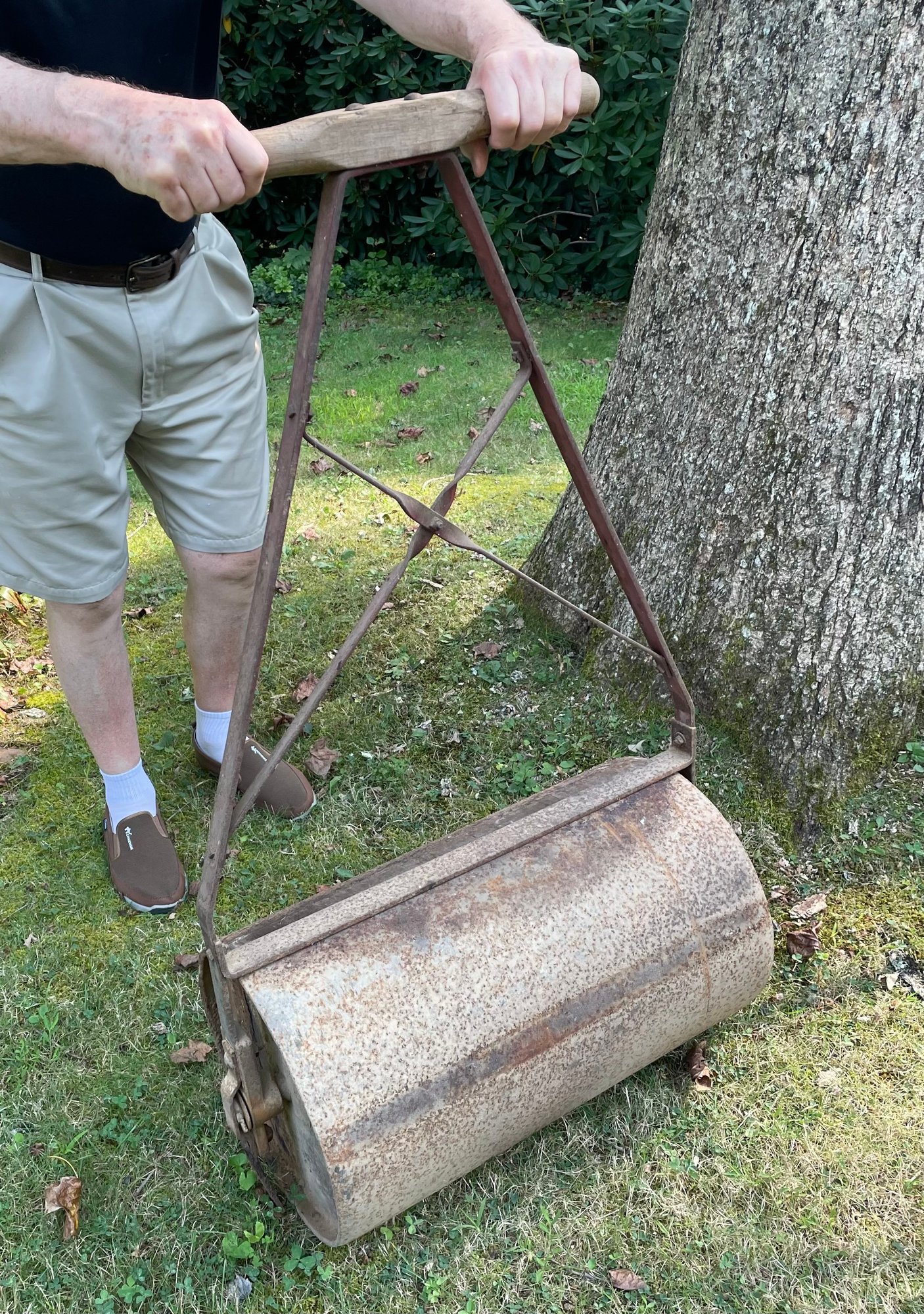 A great looking lawn roller about 100 years old. It has condition issues, the iron has rusting in one area - see last photo. Nevertheless - it's still great to look at.