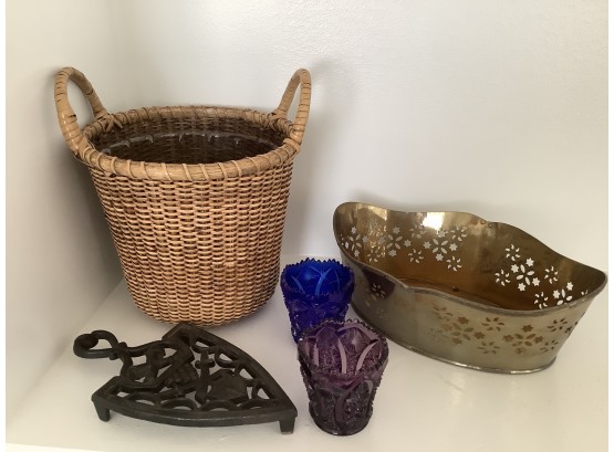 Antique Cast Iron Trivet With Two Colorful Votive Holders And More!