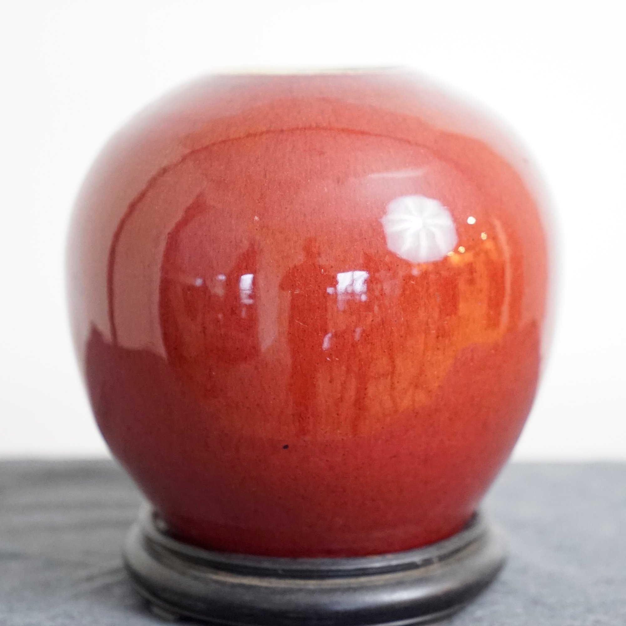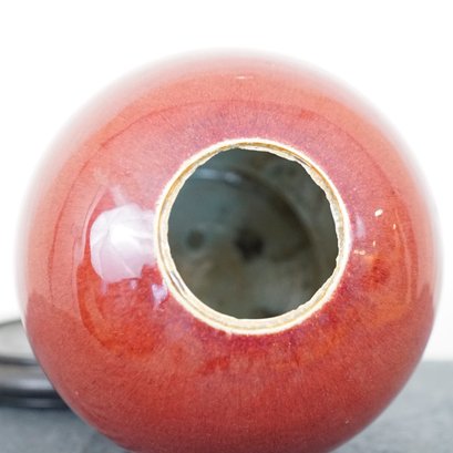 Antique Chinese Oxblood Vase with auction house tag of Brunk Auctions of NC