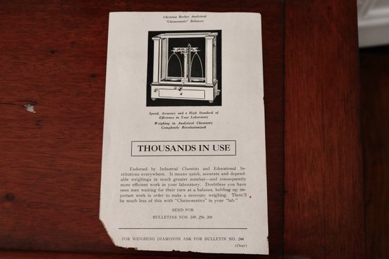 Type: Analytical “Chainomatic” chemical balance with twin pans and central beam.