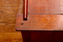 Finish: Warm reddish mahogany with light laboratory wear and oxidation to brass.