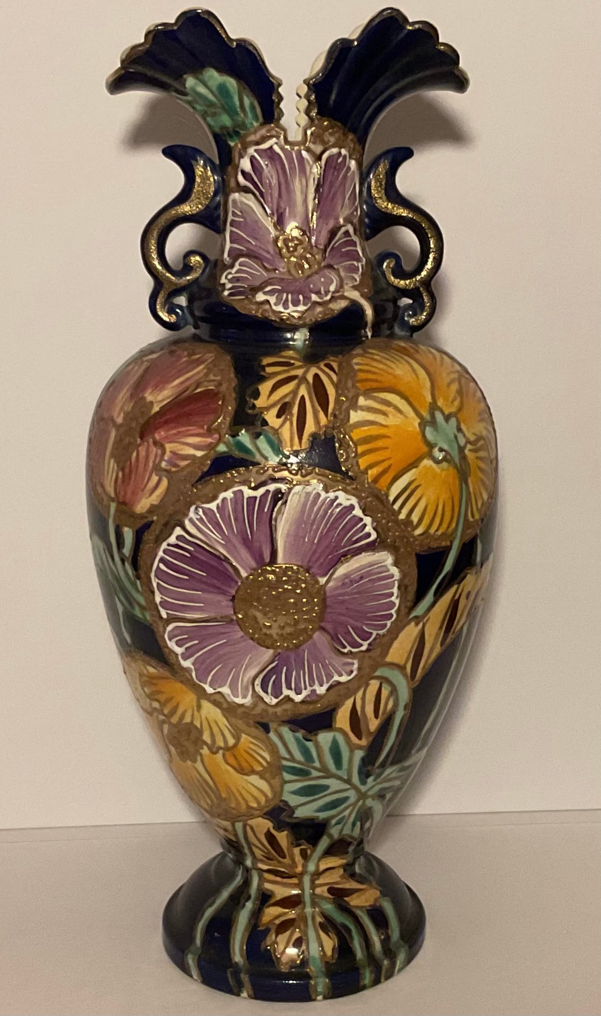 Antique Cobalt Blue & Gold Gilded Flower Vase.