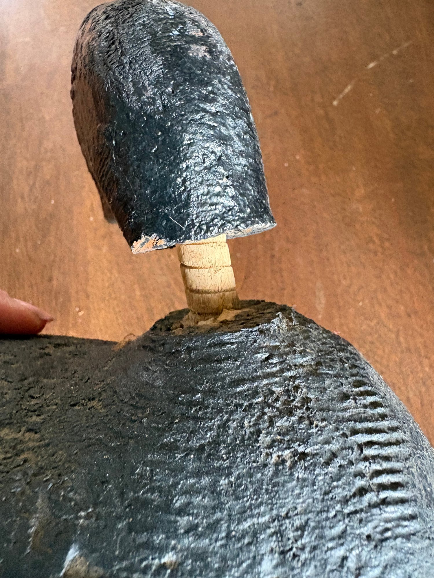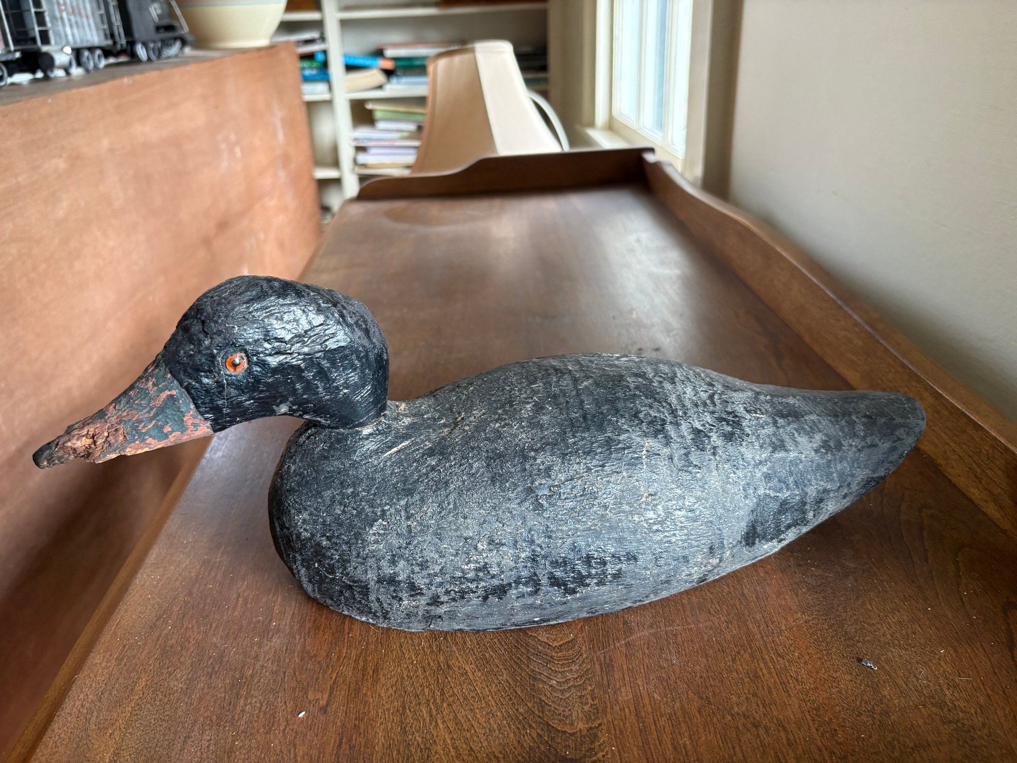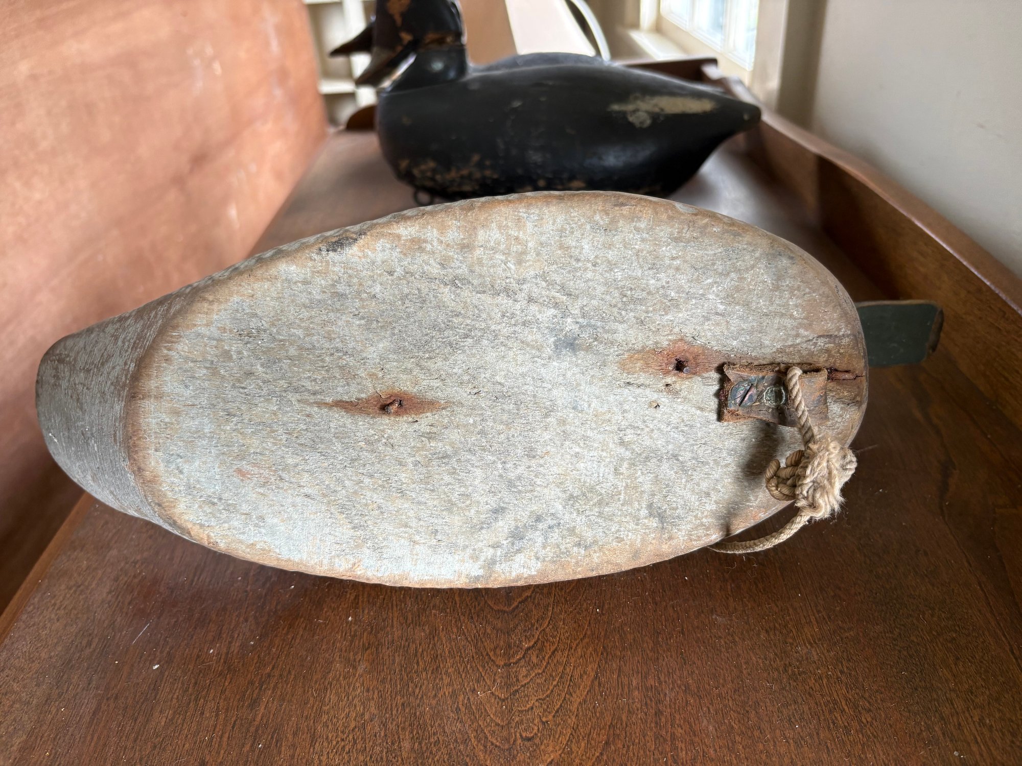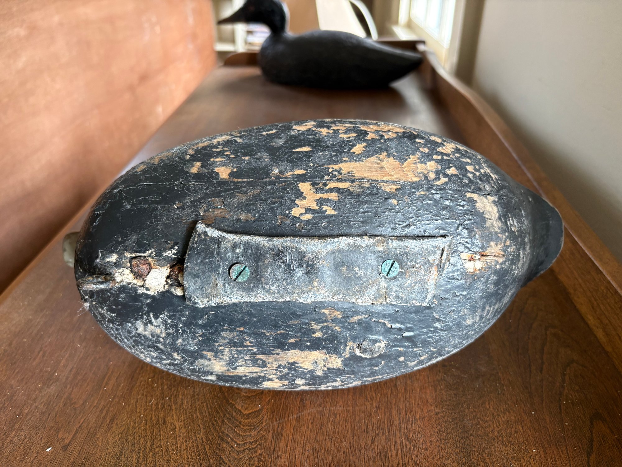 Five (5) antique hand carved wooden duck decoys. These decoys were used actively to hunt with and not just for display. One has original H-Weight still attached.
