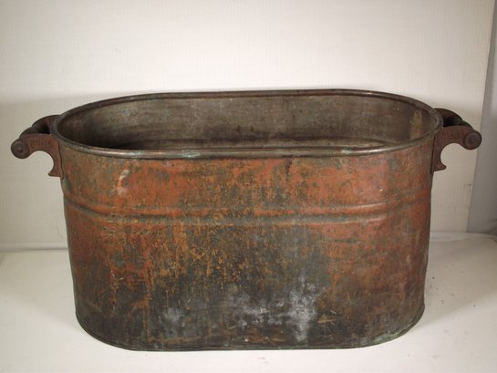 Antique Large Copper Boiler With Rome Hardware