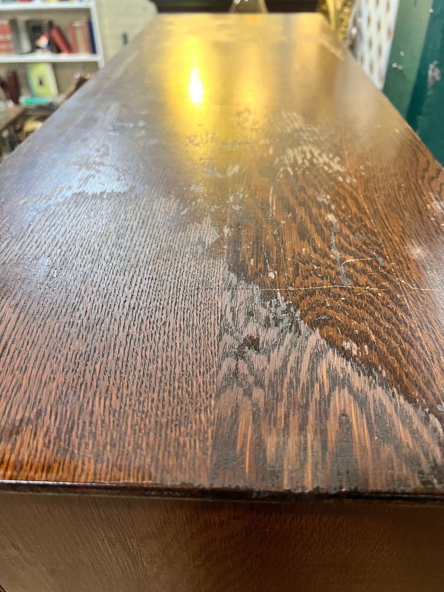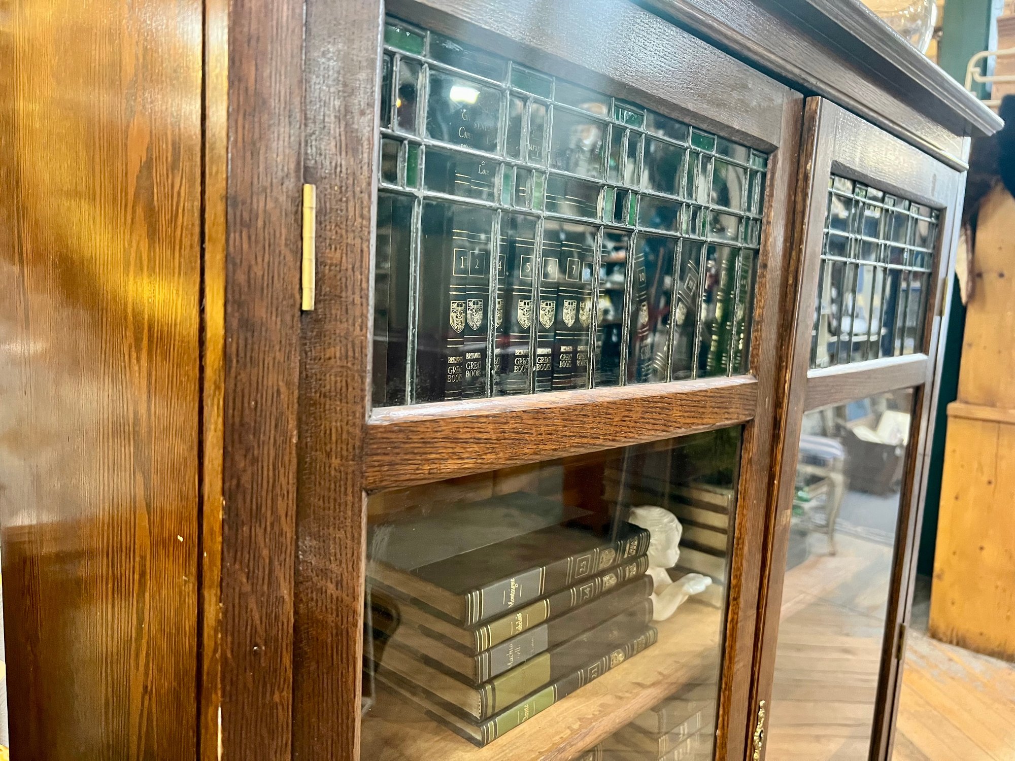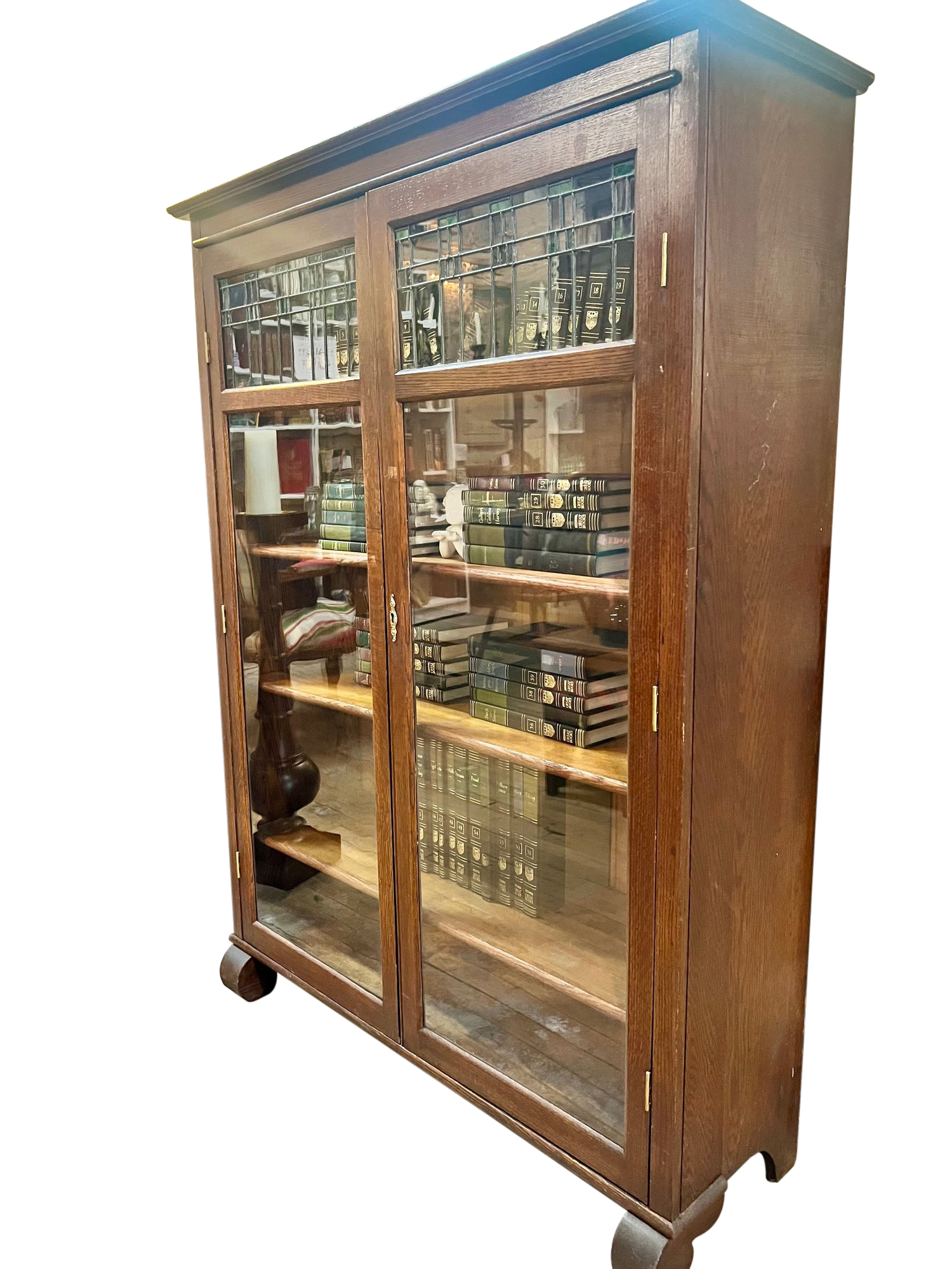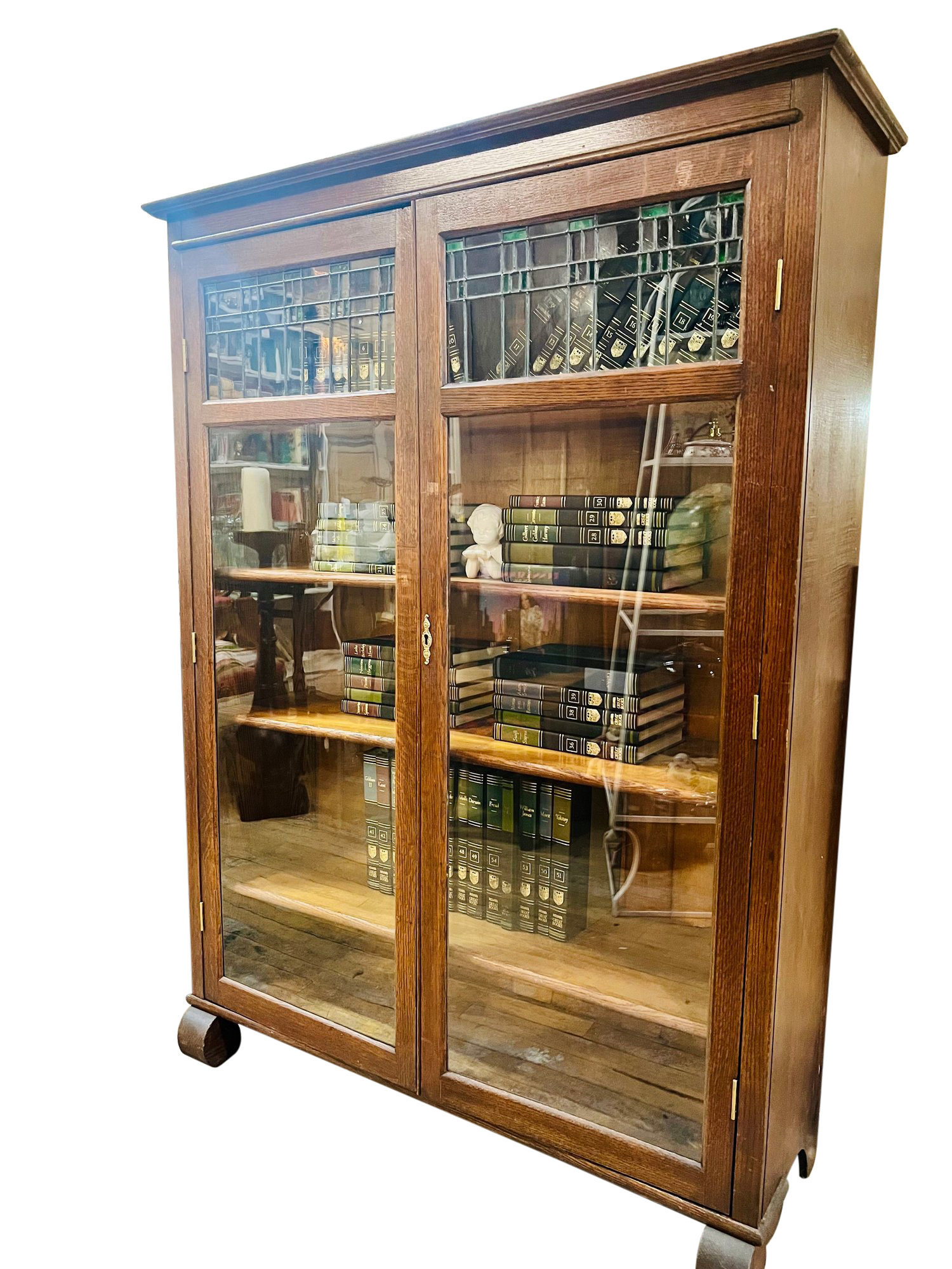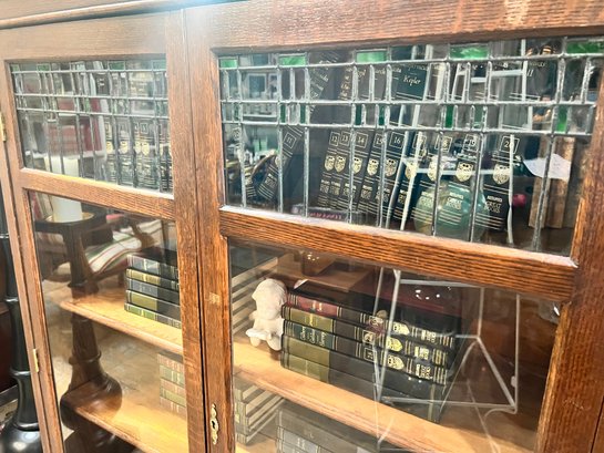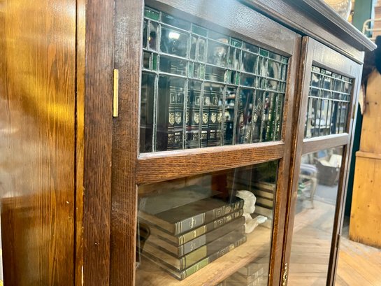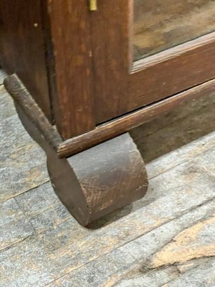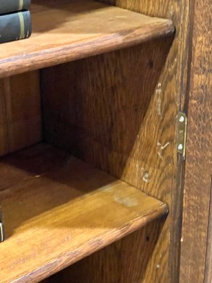 Good condition with key (not original). Minor wear throughout, solid piece! Shelves are a little tricky to put in. Heavy, bring help to load into your vehicle.