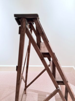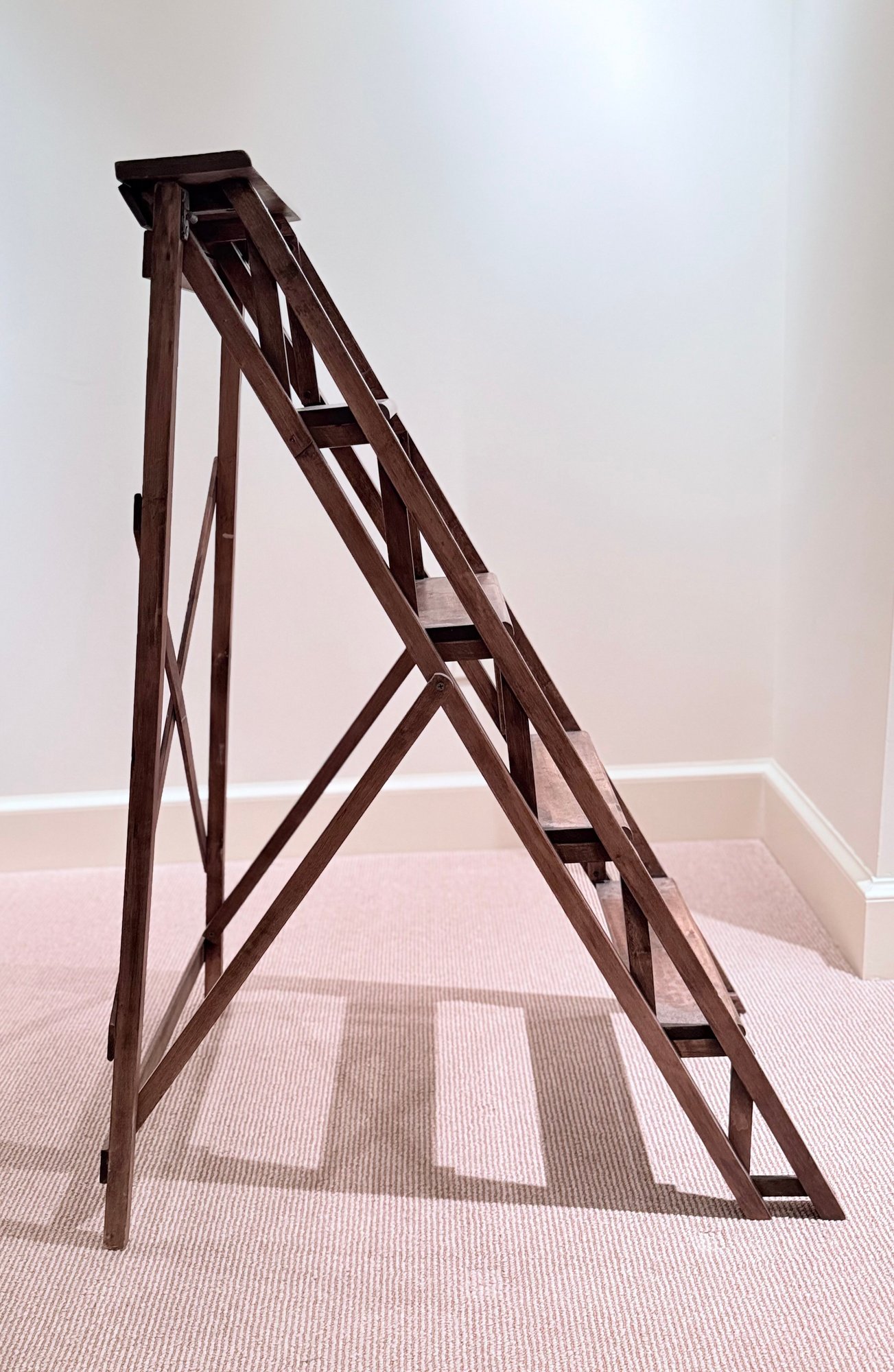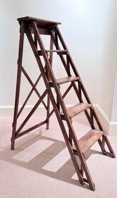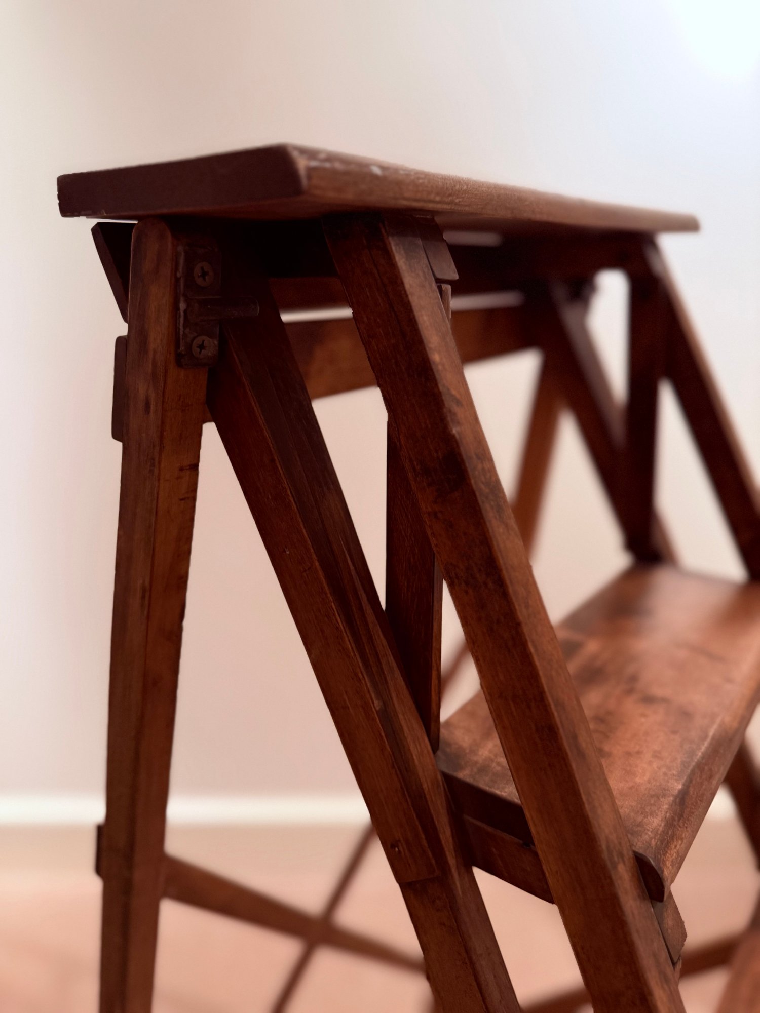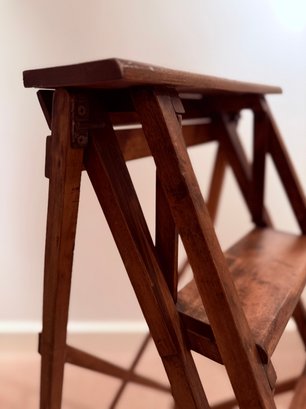 Beautifully designed and very sculptural vintage library ladder. With criss cross back and double cross side detail.