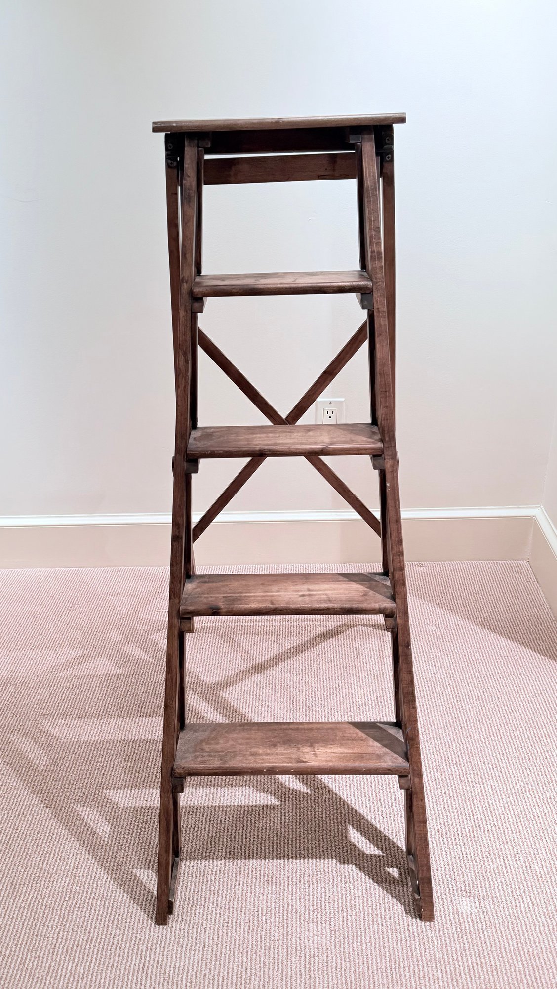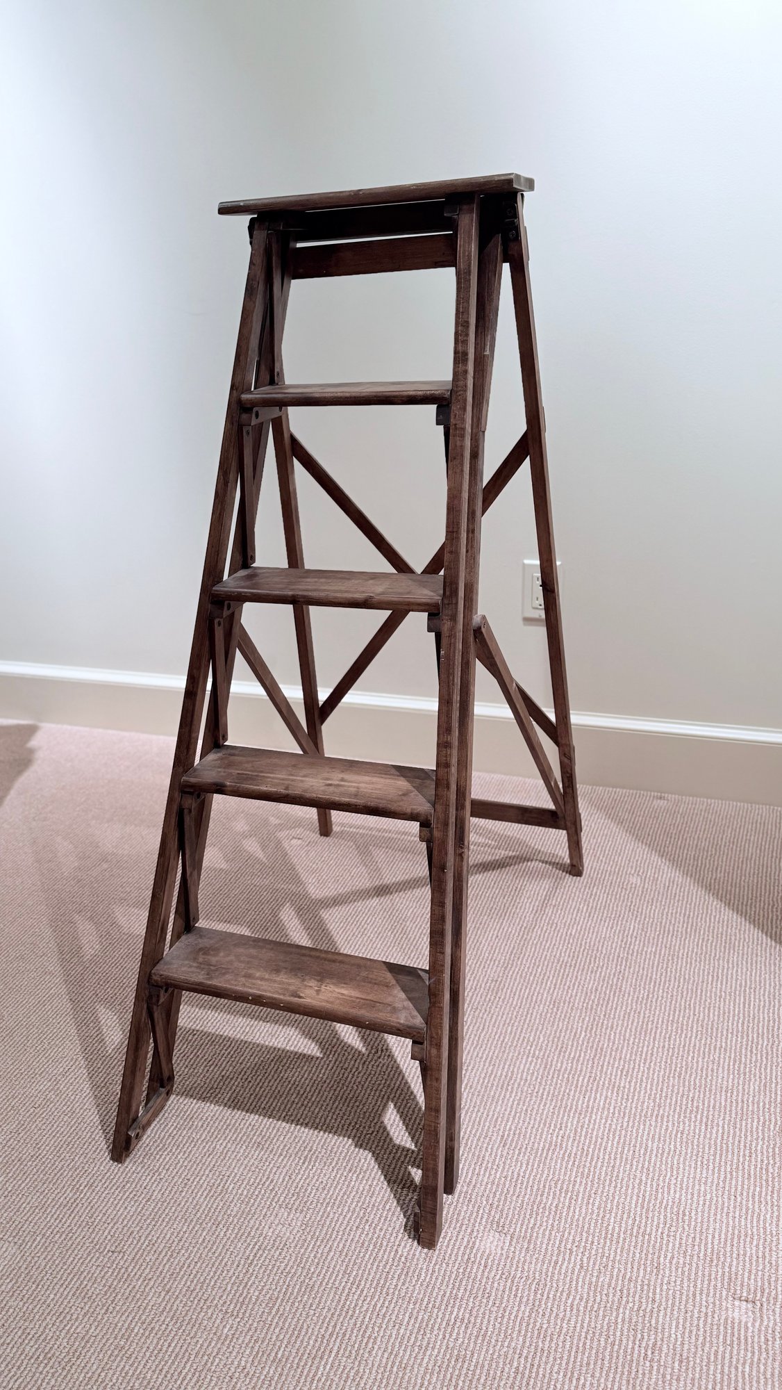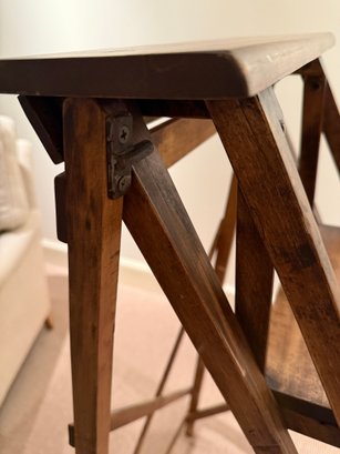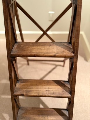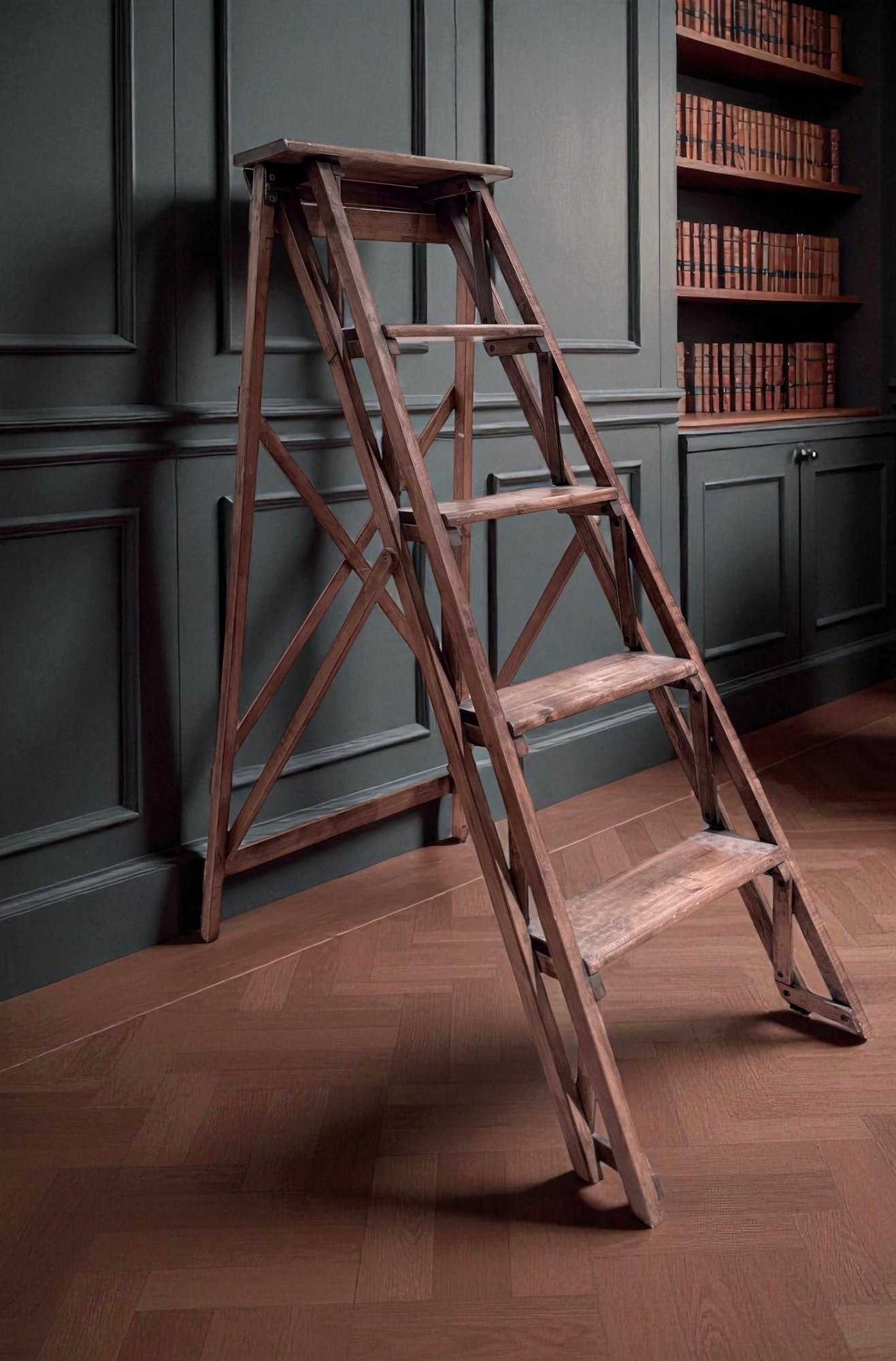 Beautifully designed and very sculptural vintage library ladder. With criss cross back and double cross side detail.