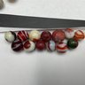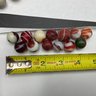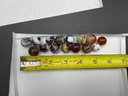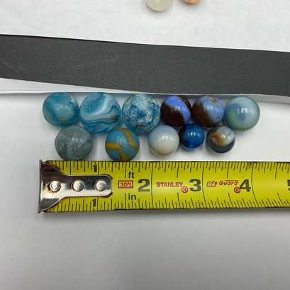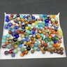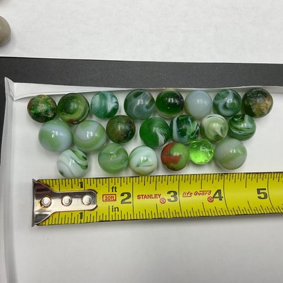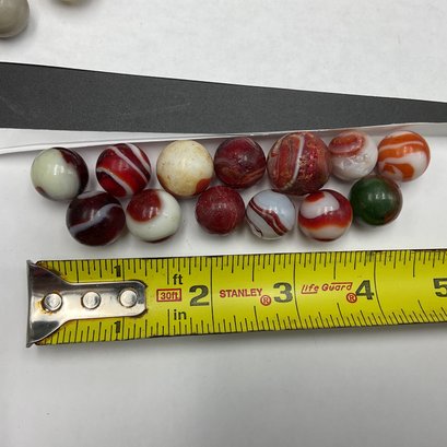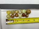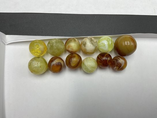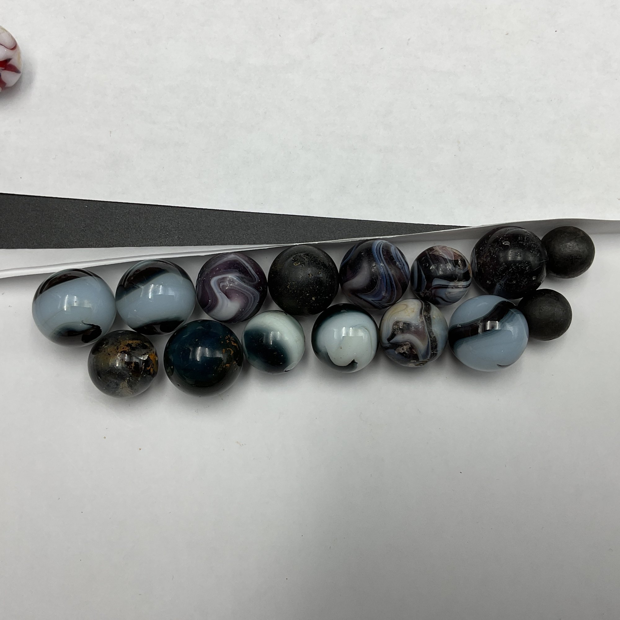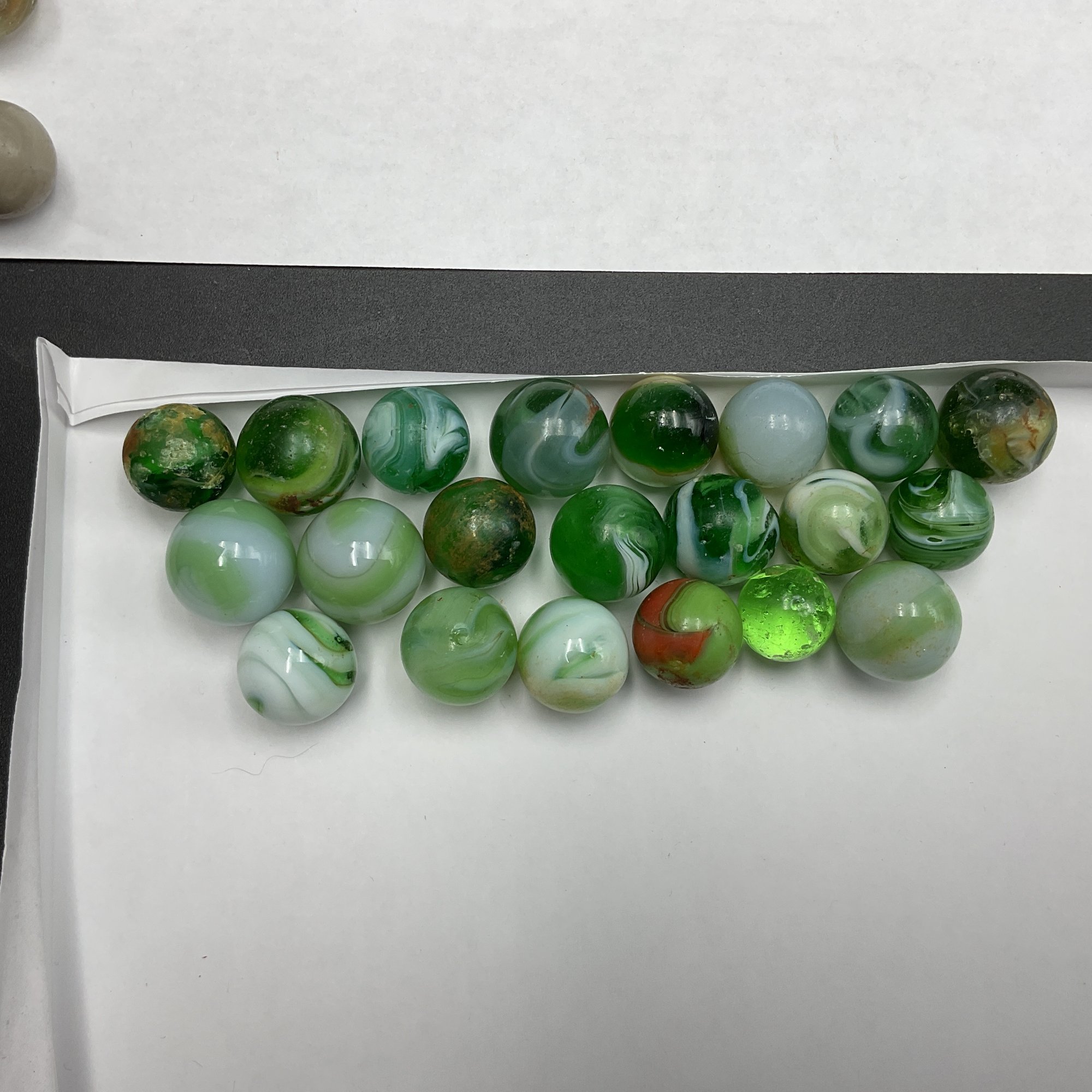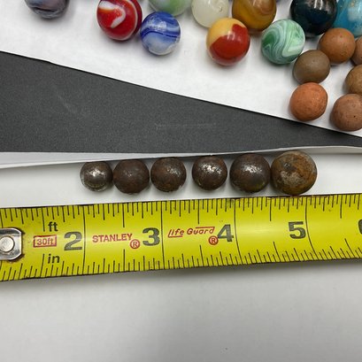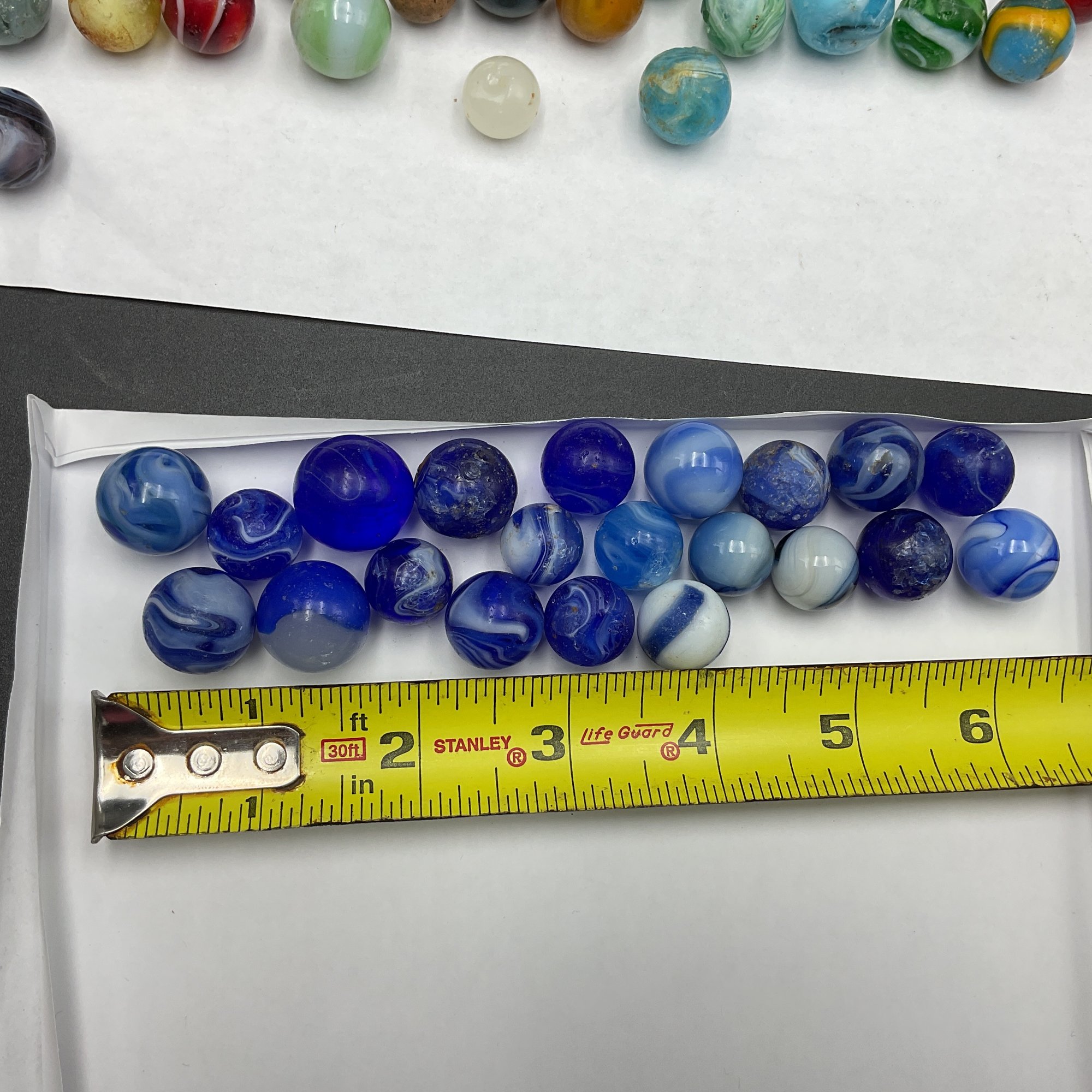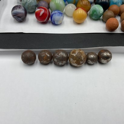 Large lot of various antique marbles believed to be from the 1930's. Includes 6 Steelies, antique clay marbles including possible Bennington boulder marble, and various other marbles in every colorway. Condition varies, these were well used and many have chips or other damage. Please see photos as these are the best indication of style and condition.