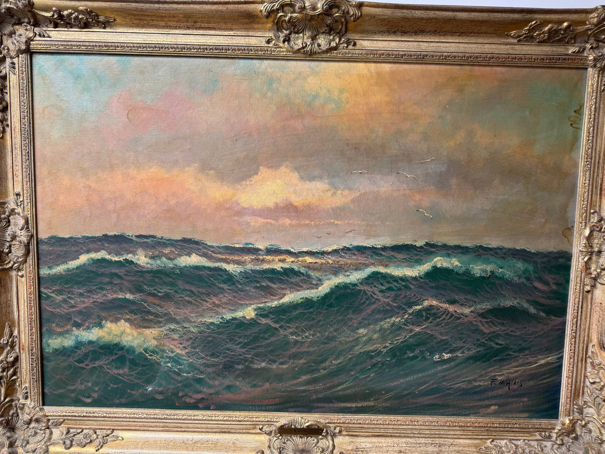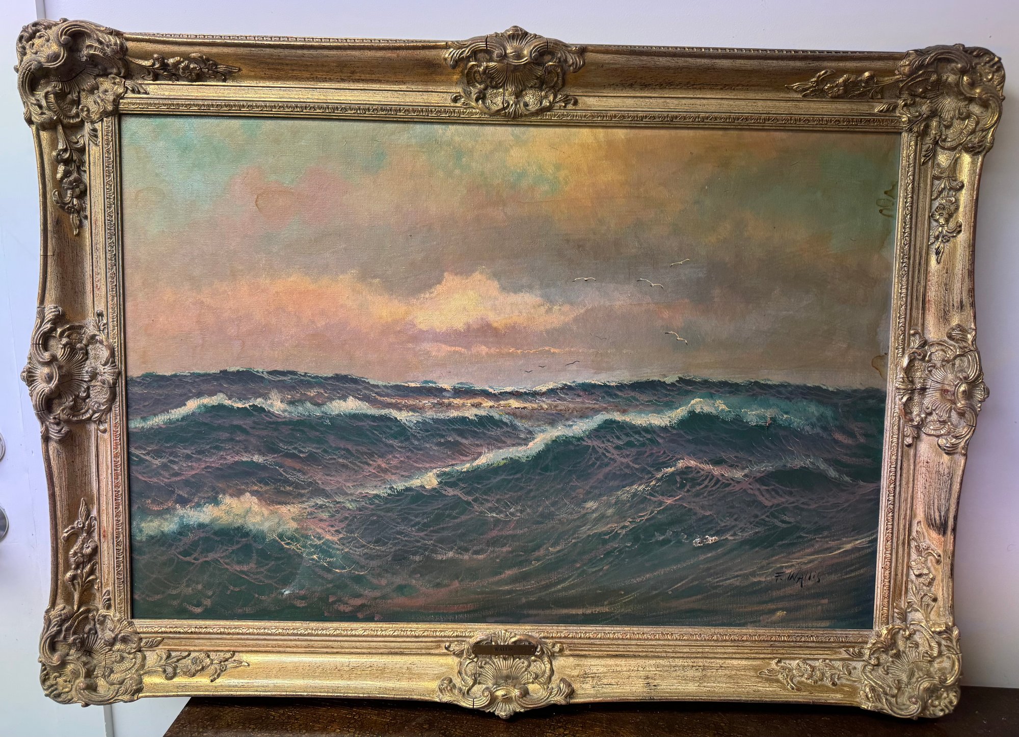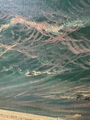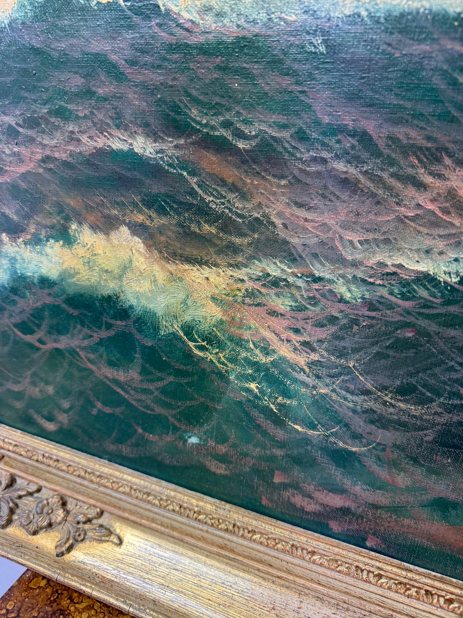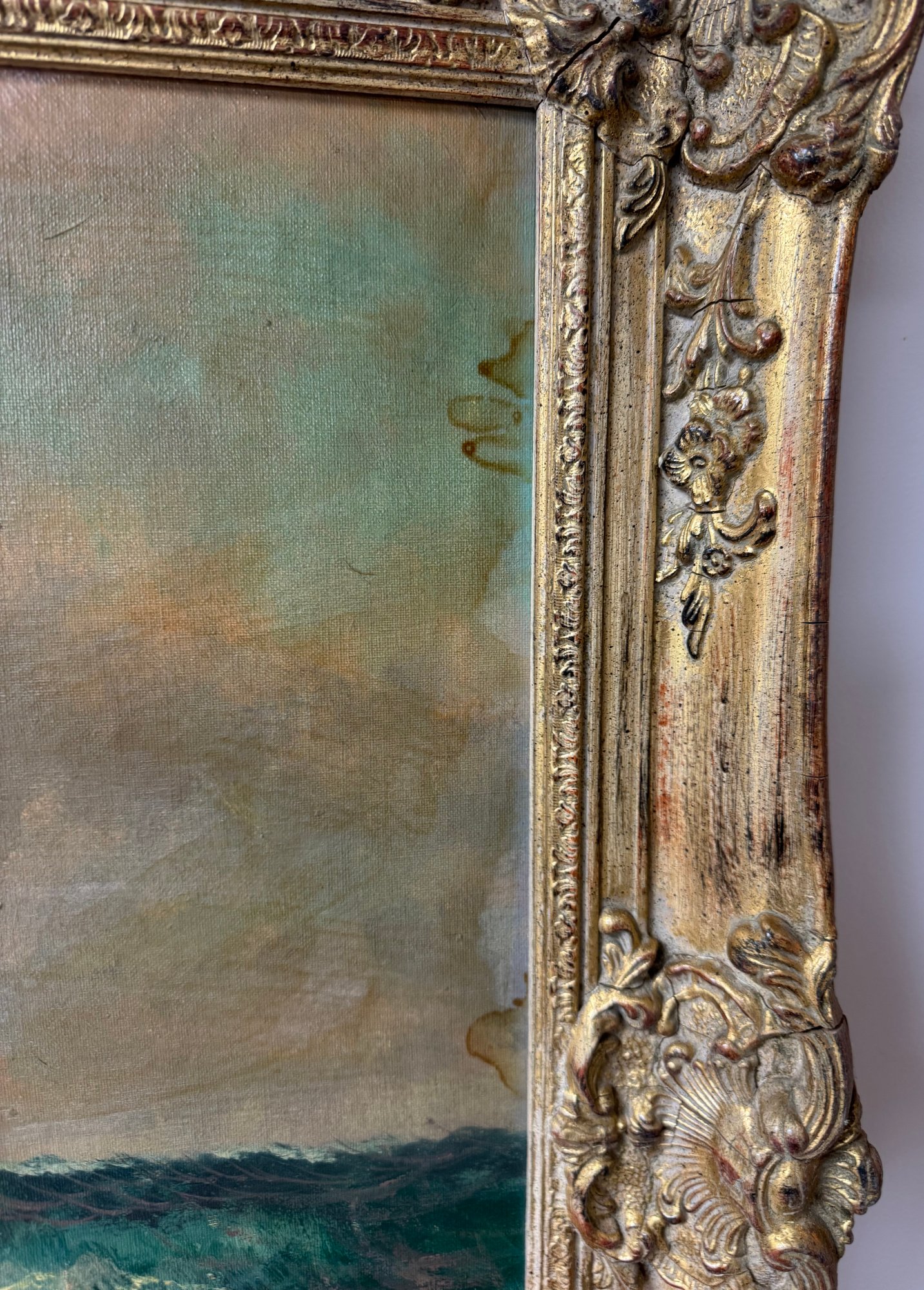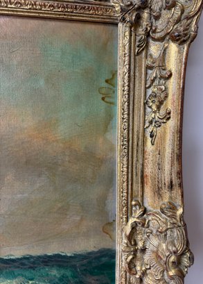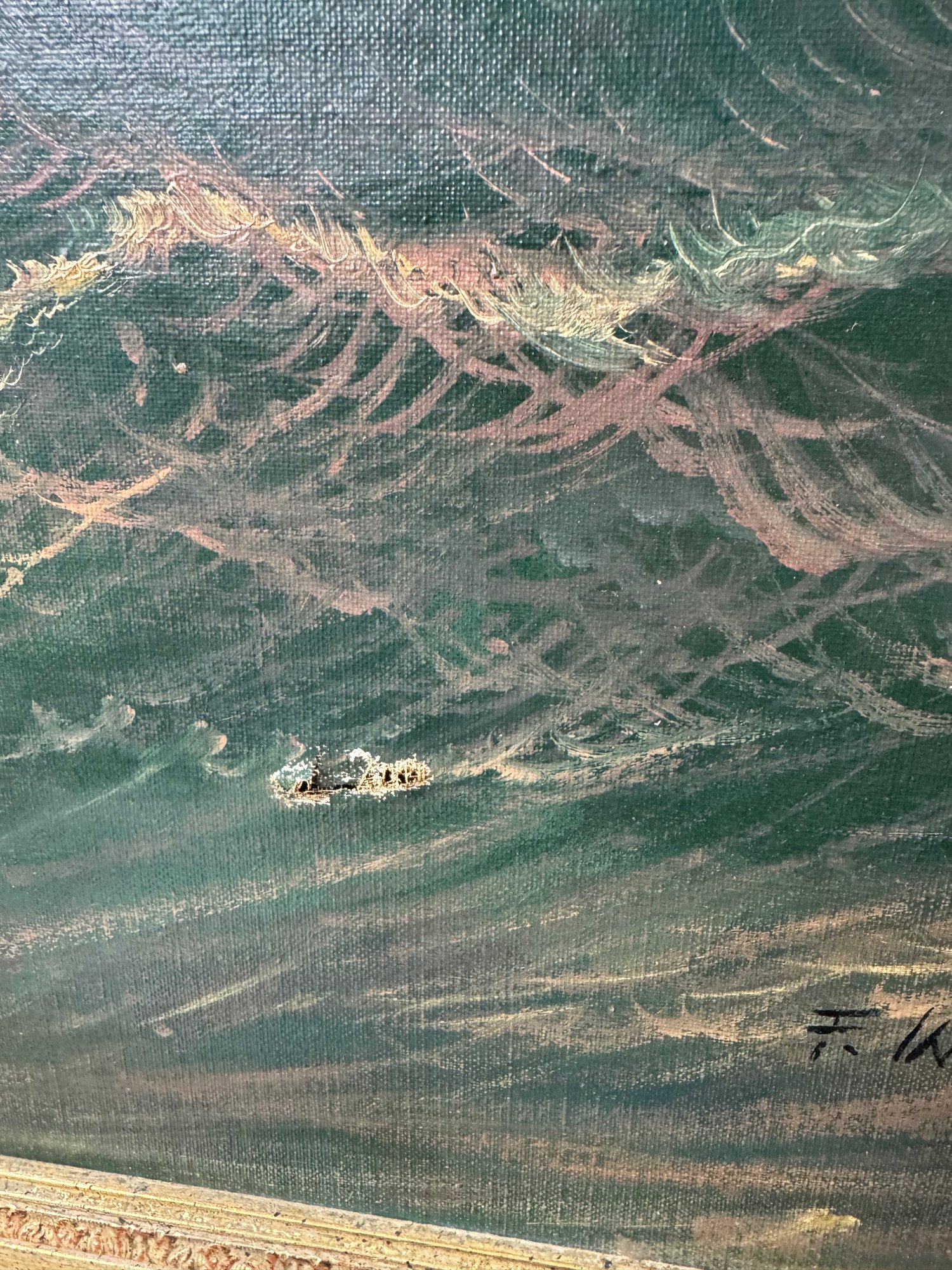 Notes: frame has cracks throughout, painting has 2 holes and dent