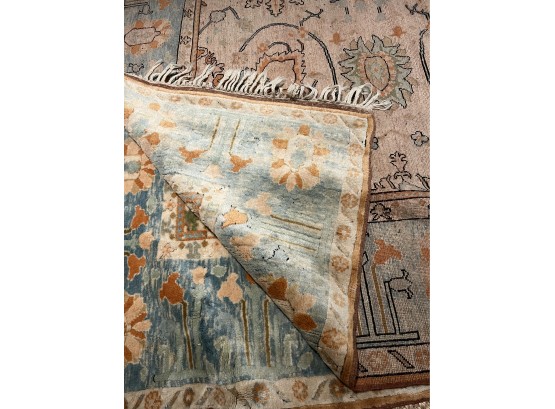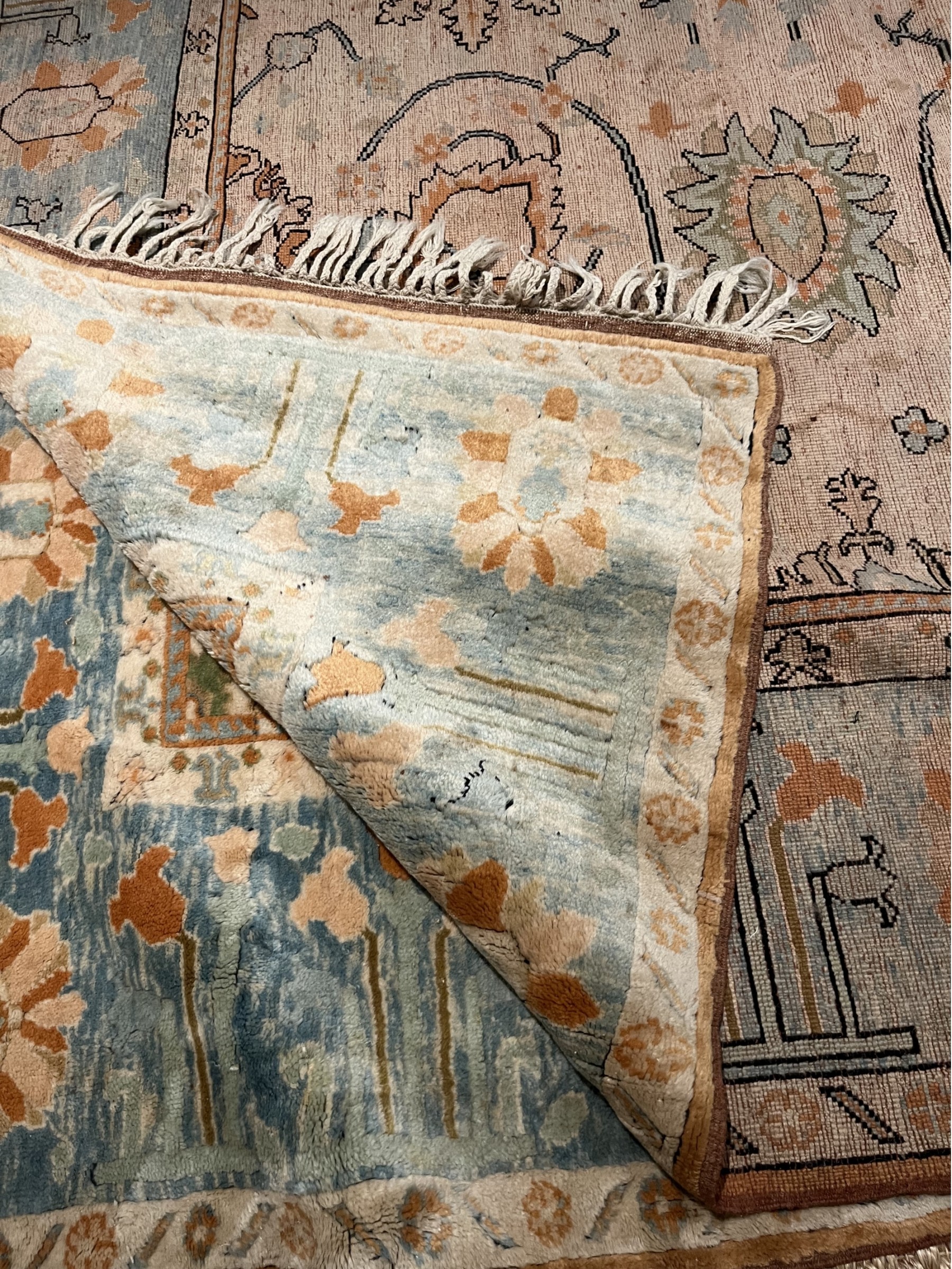 Lovely Antique Oriental Rug. Braded Tassel Fringe. Shades of ivory, apricot and aqua.