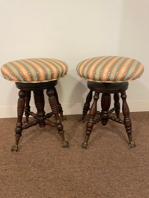 Antique Piano Stool With Glass & Brass Ball & Claw Feet