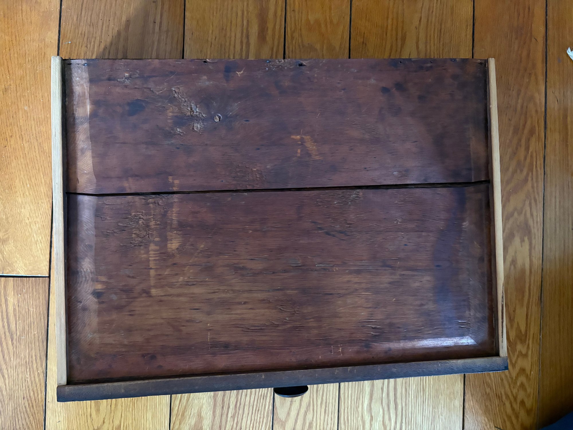 Notes: Split to desktop wood surface. Condition consistent with antique nature.