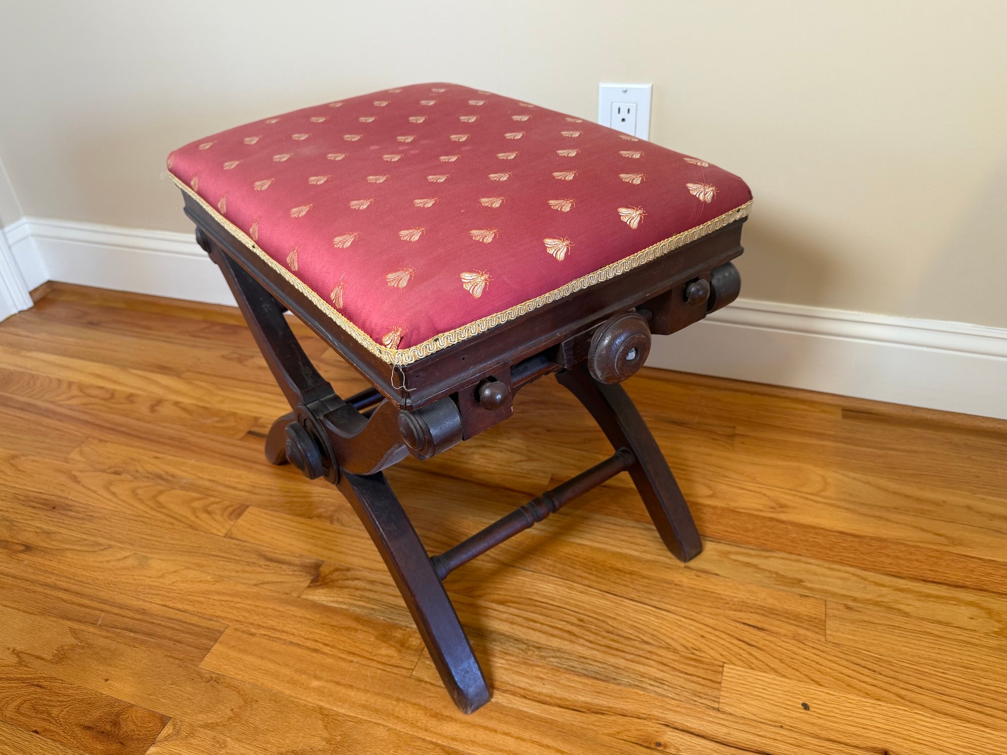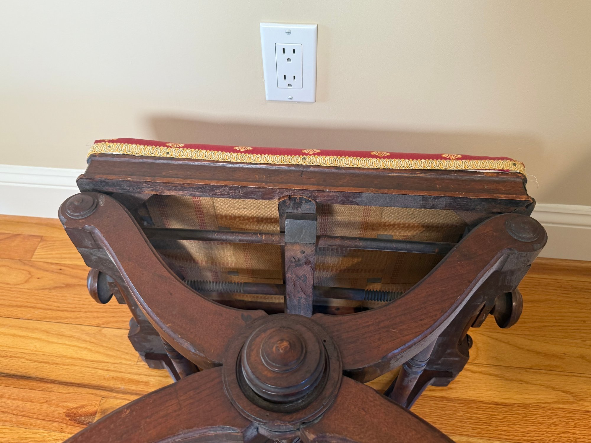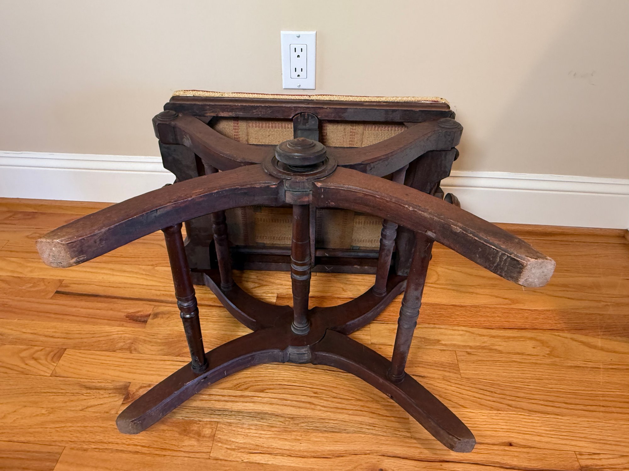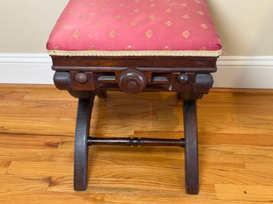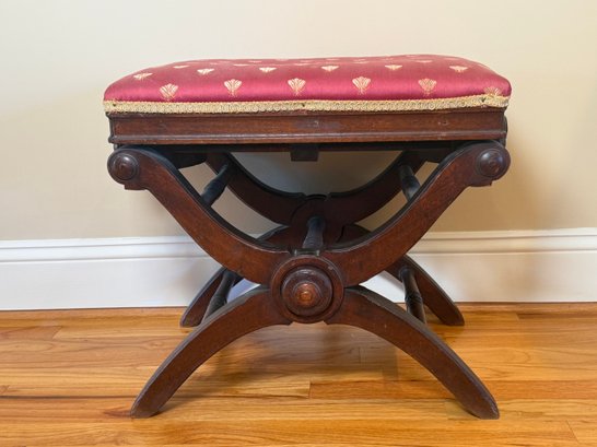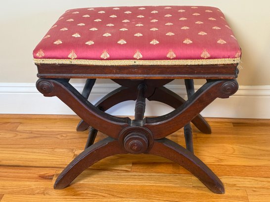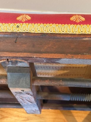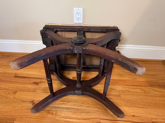 Antique Victorian Adjustable Piano Stool With Dragonfly Upholstery