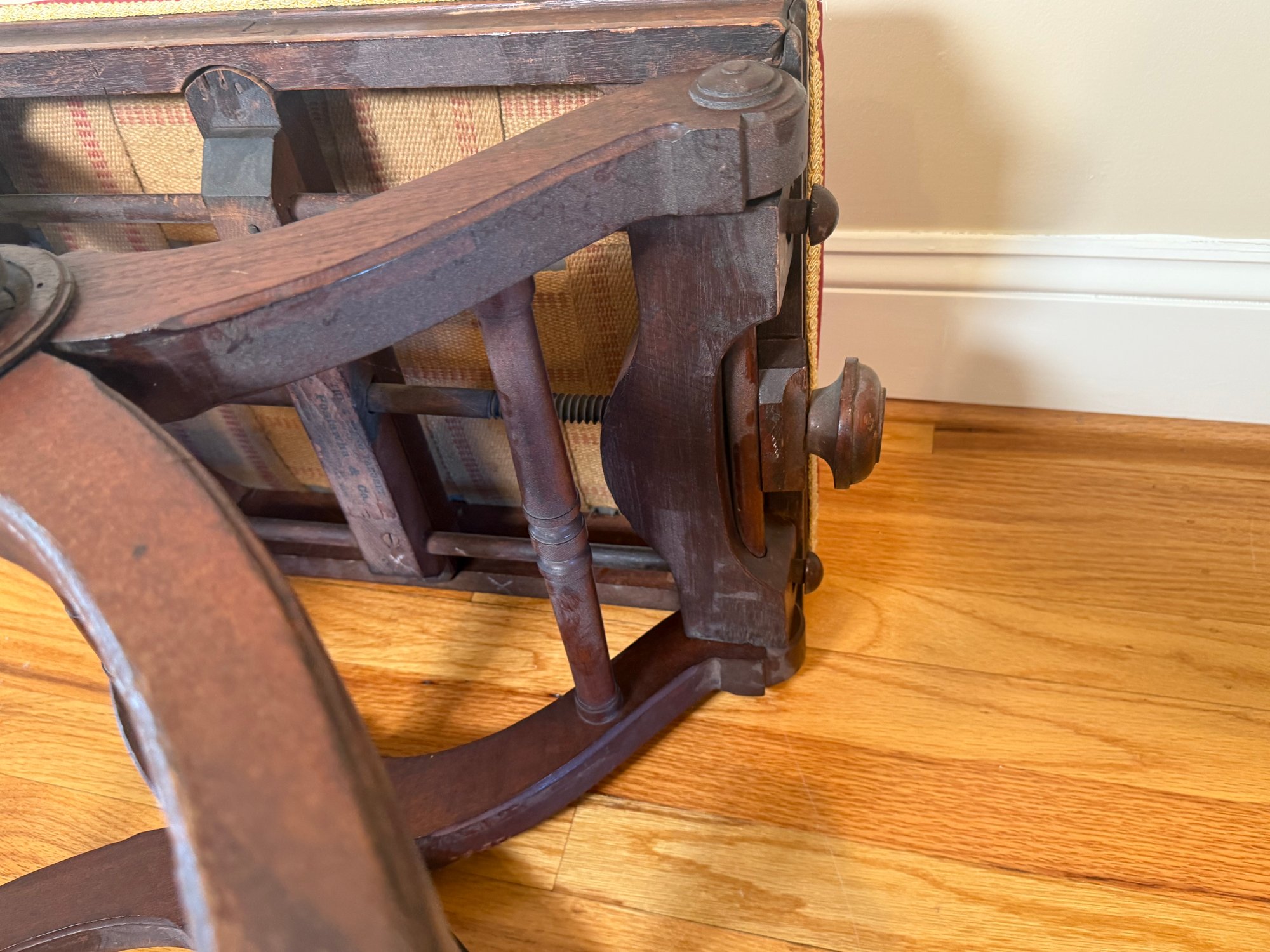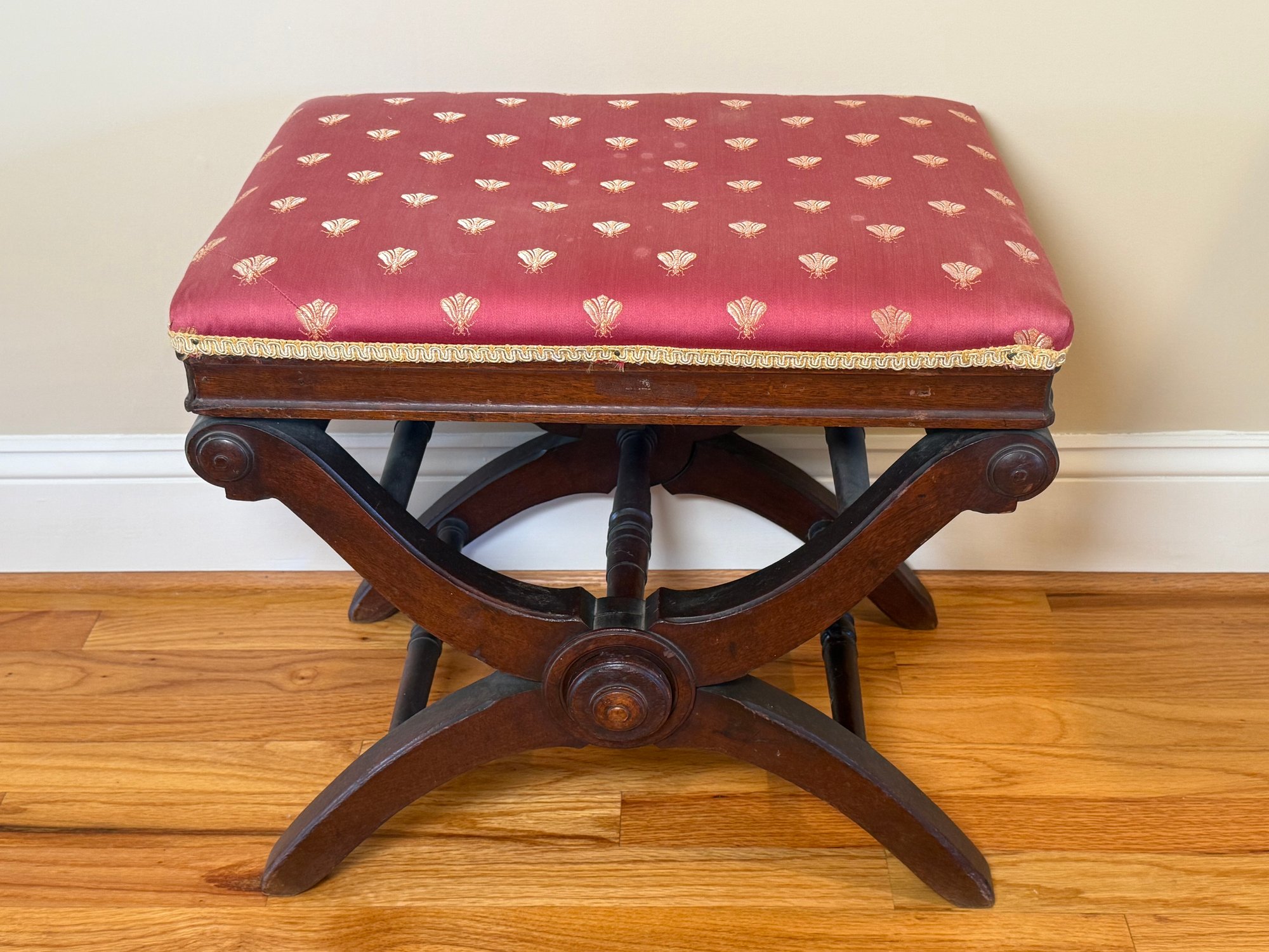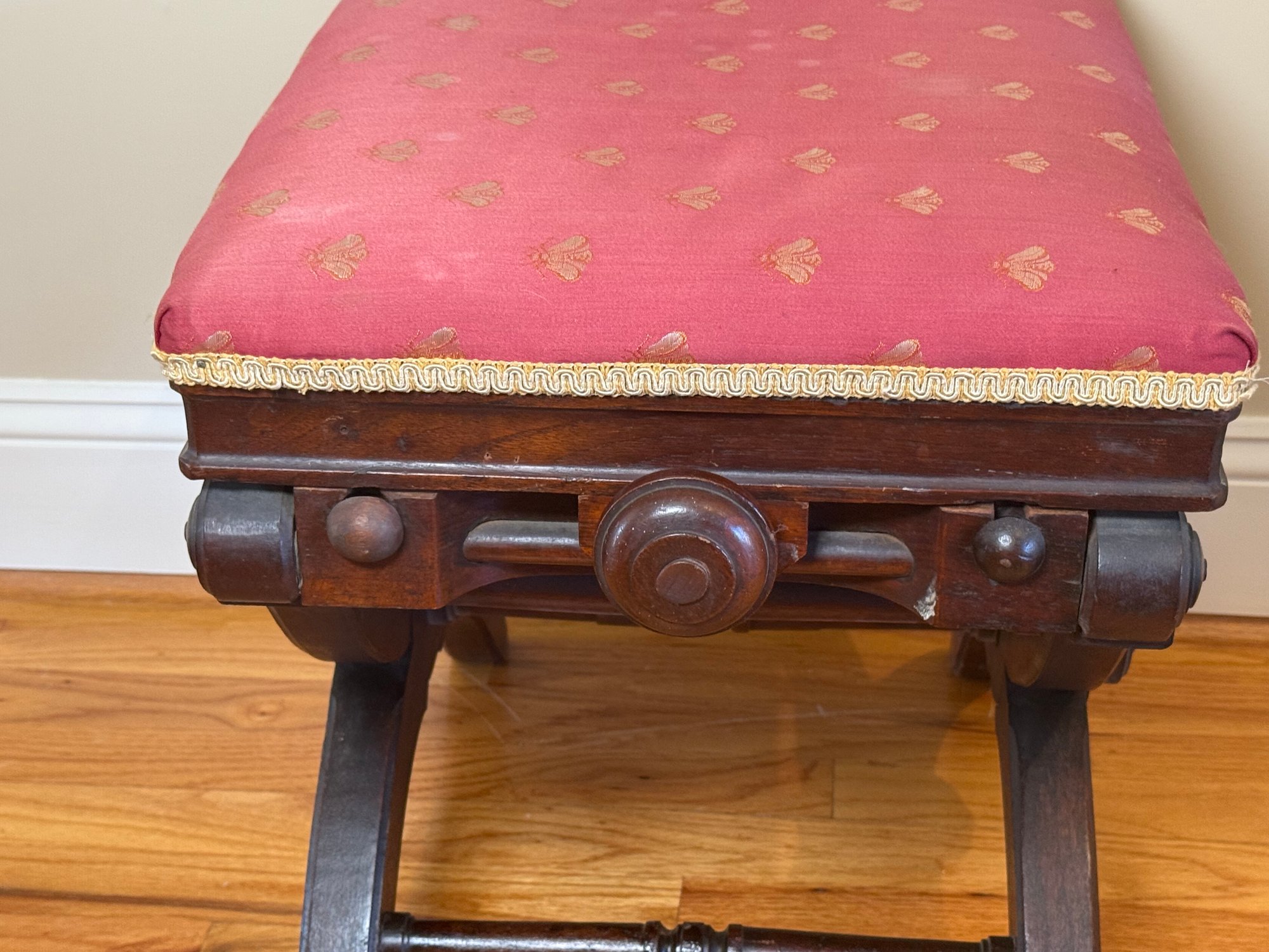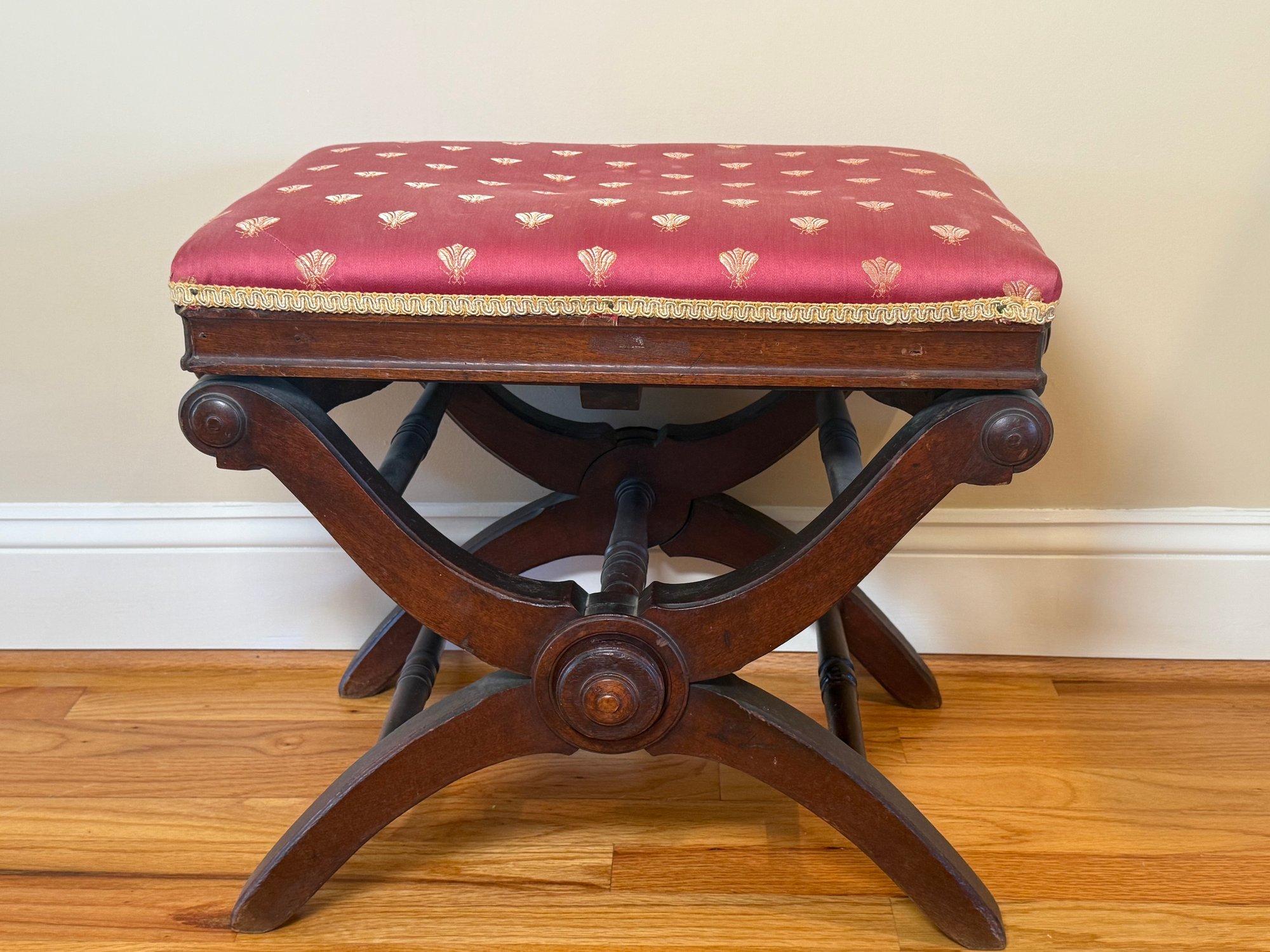 Antique Victorian Adjustable Piano Stool With Dragonfly Upholstery