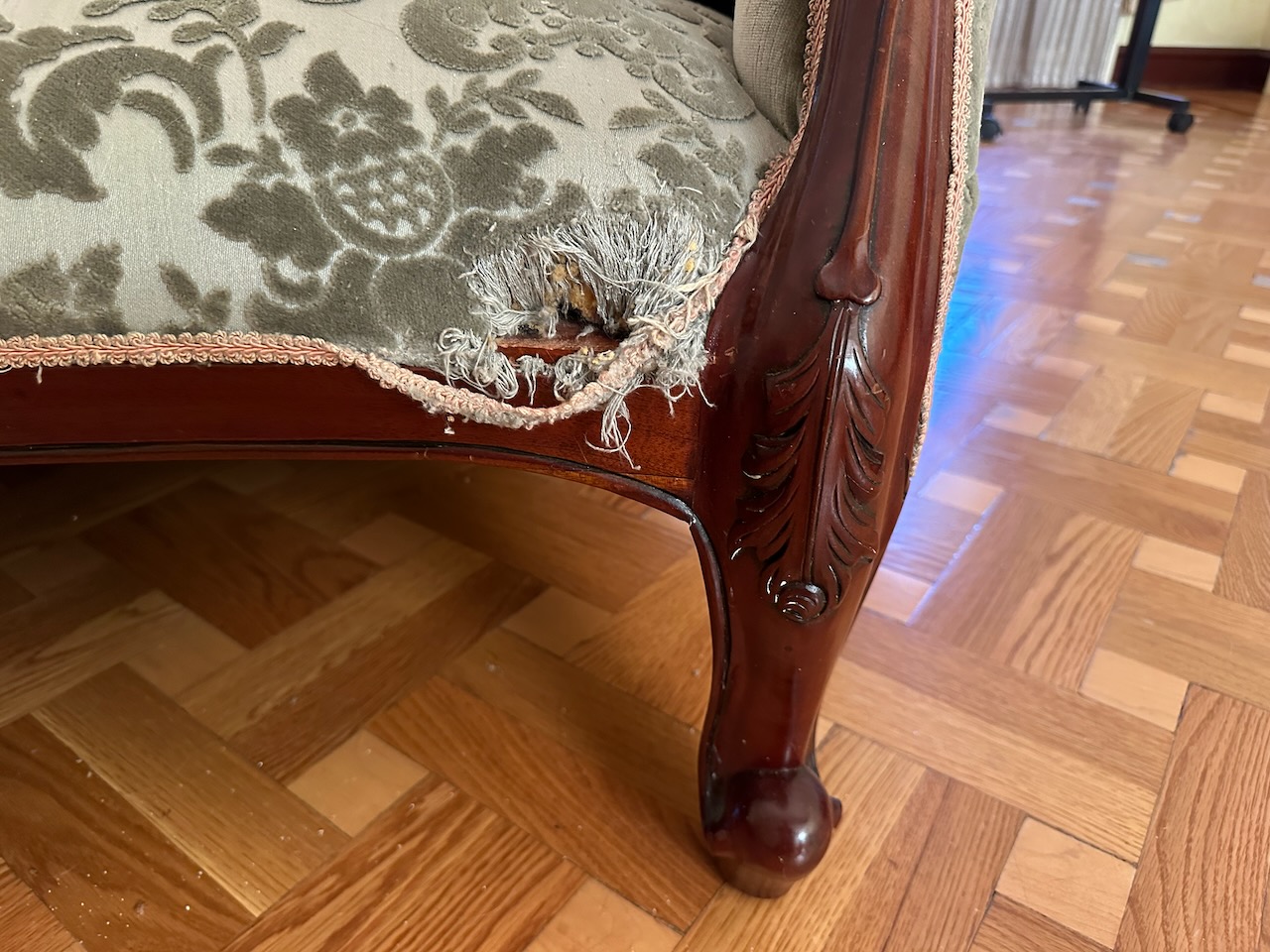 Some condition issues above the right facing leg as seen in photos. Meow!