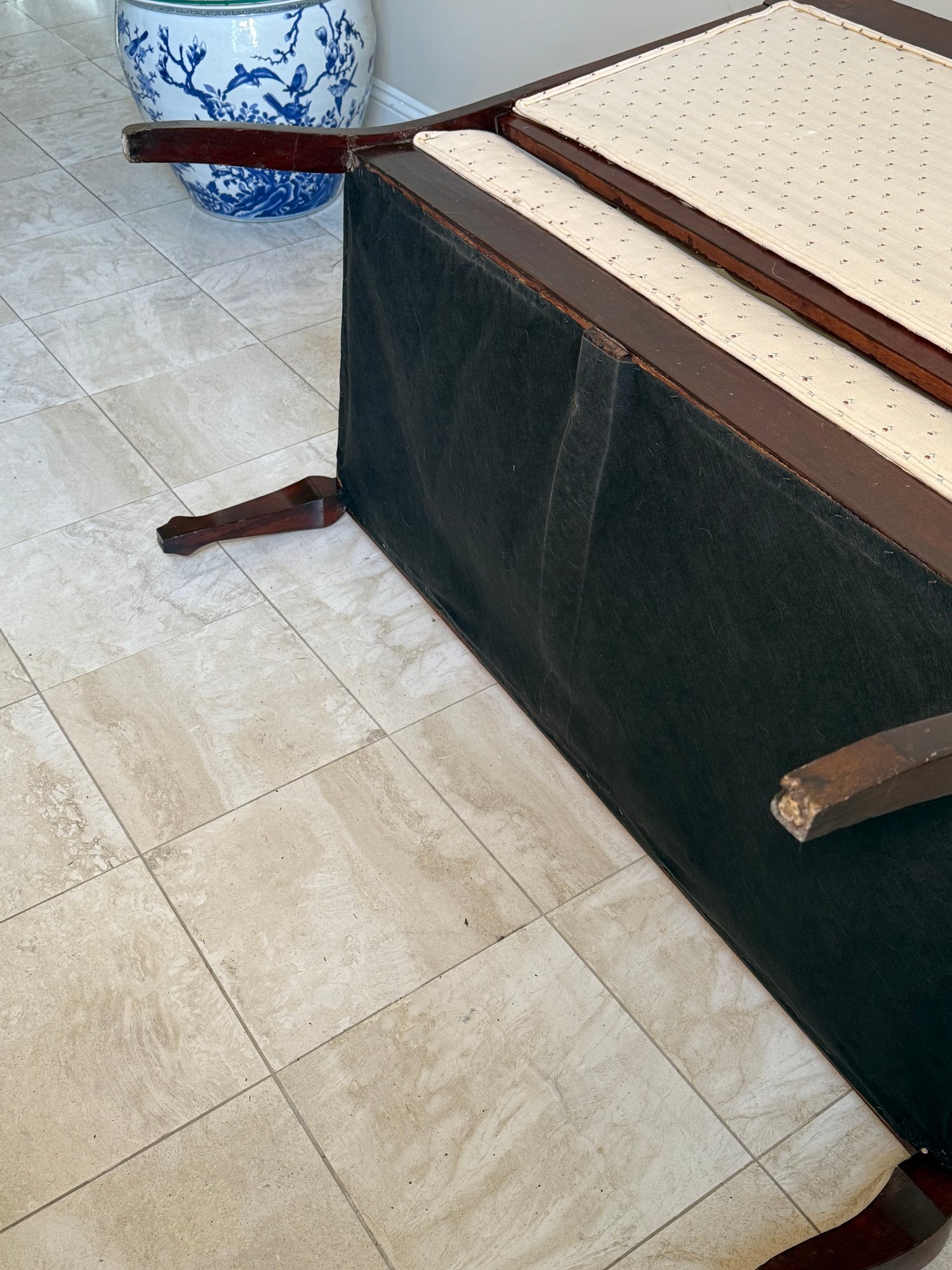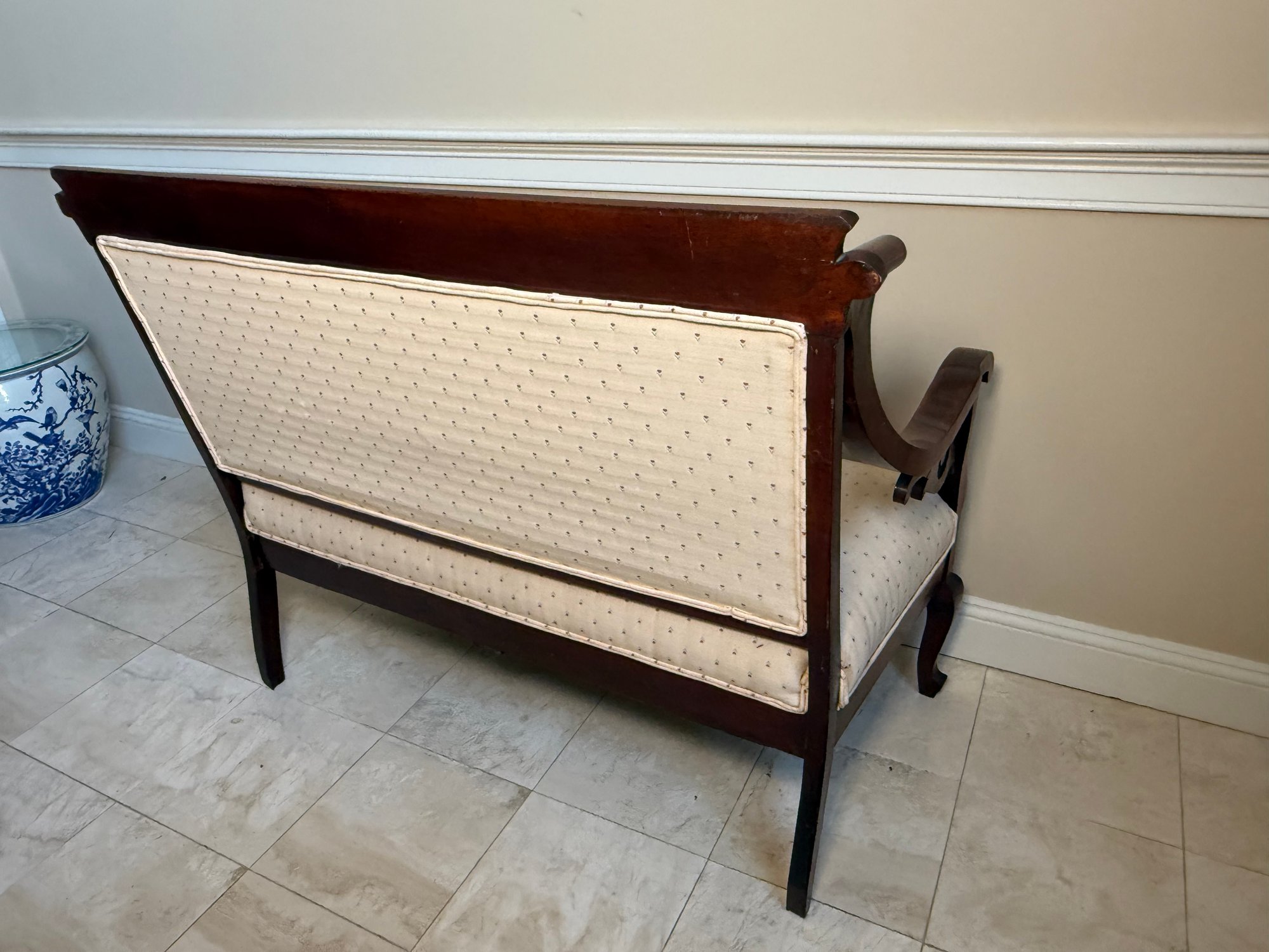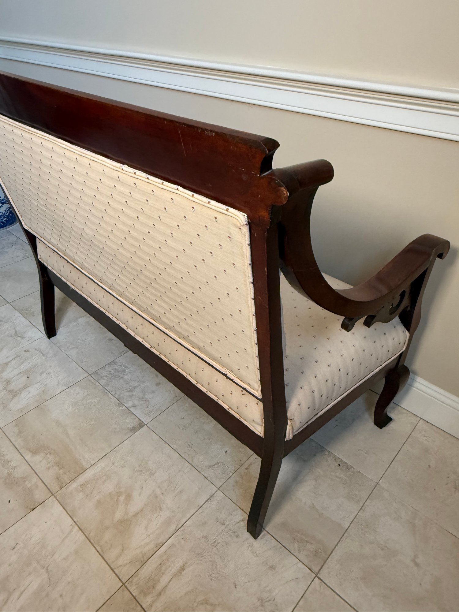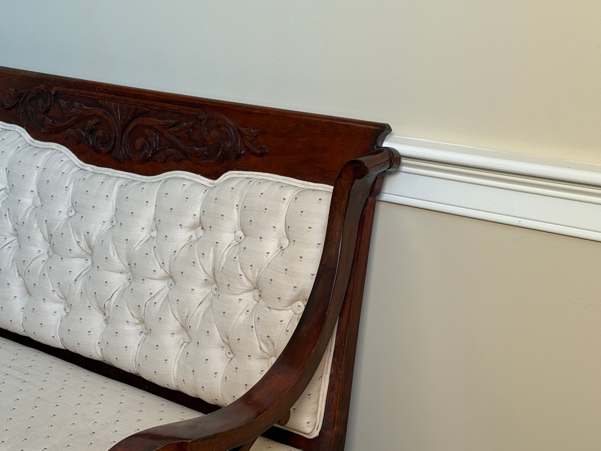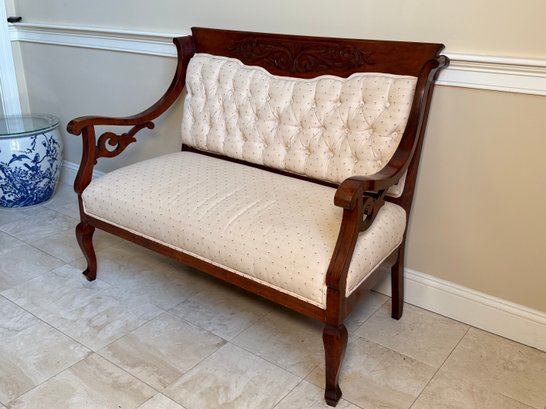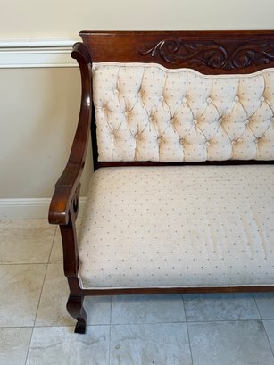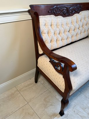 Antique Victorian Carved Wood Scroll Detail Setee