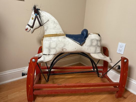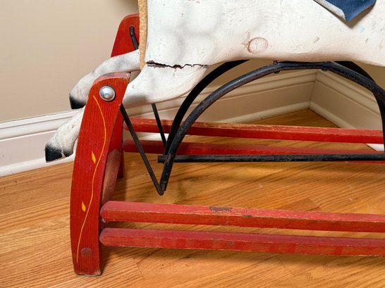 Antique Victorian Hand Painted Wooden Rocking Horse Glider