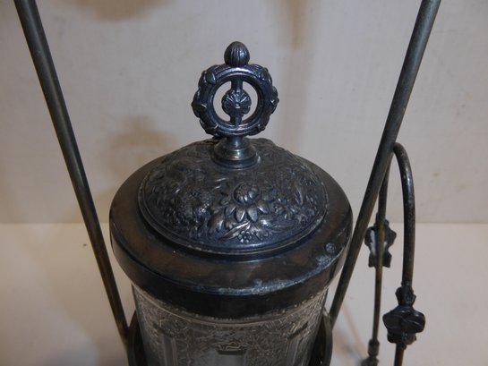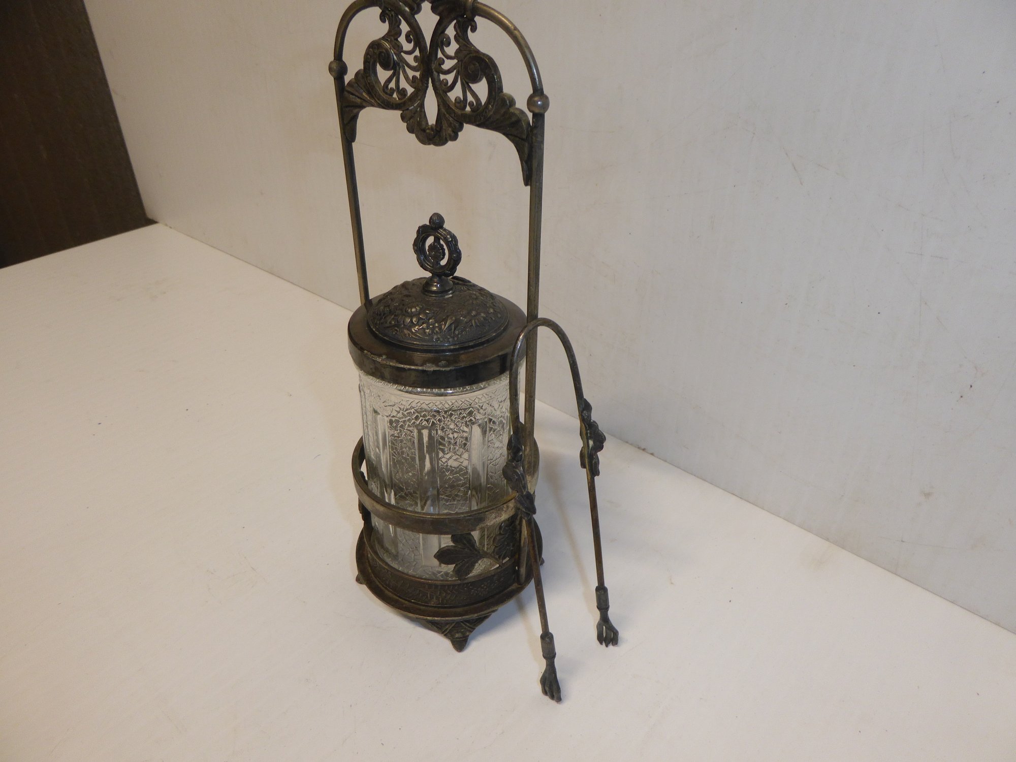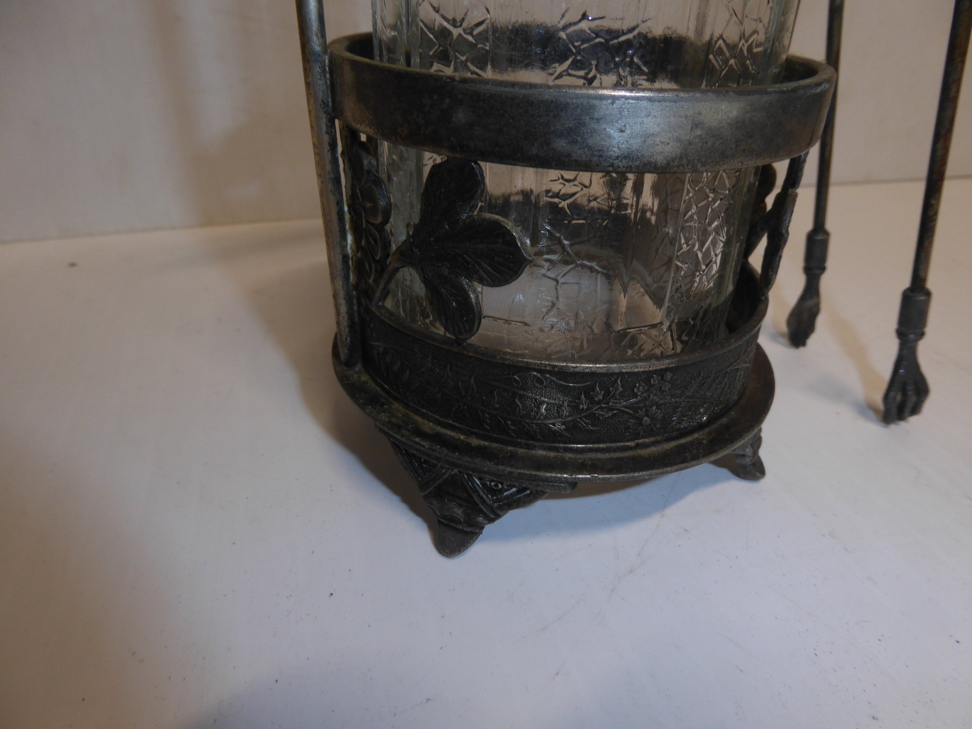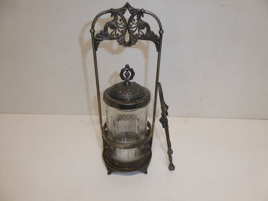 Antique Victorian Pickle Jar With Claw Tongs