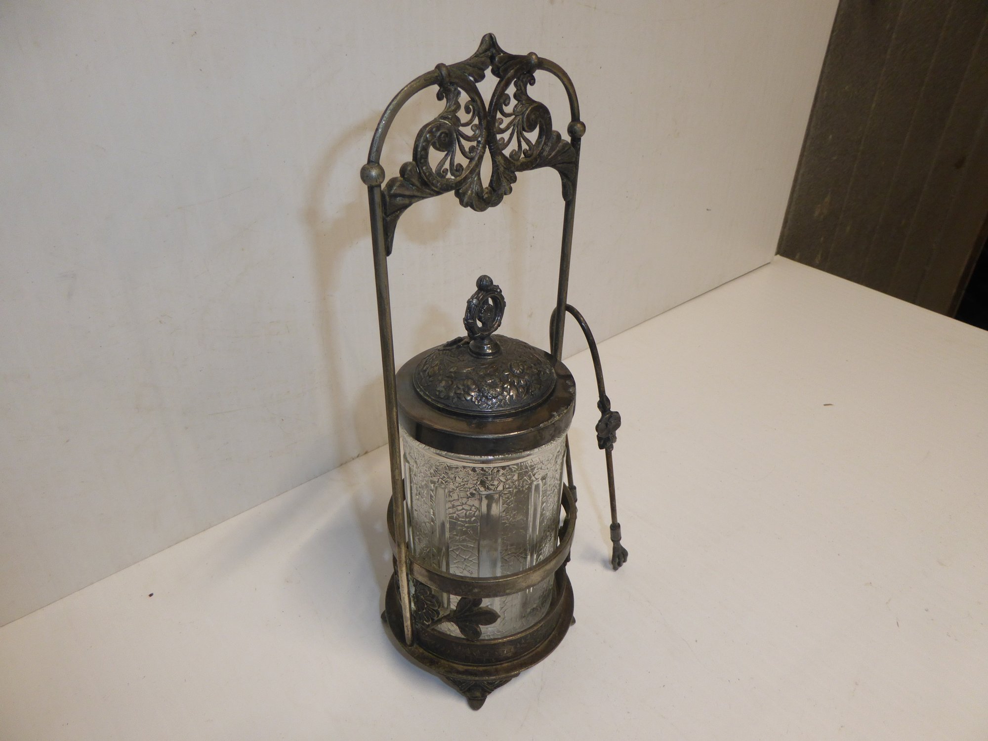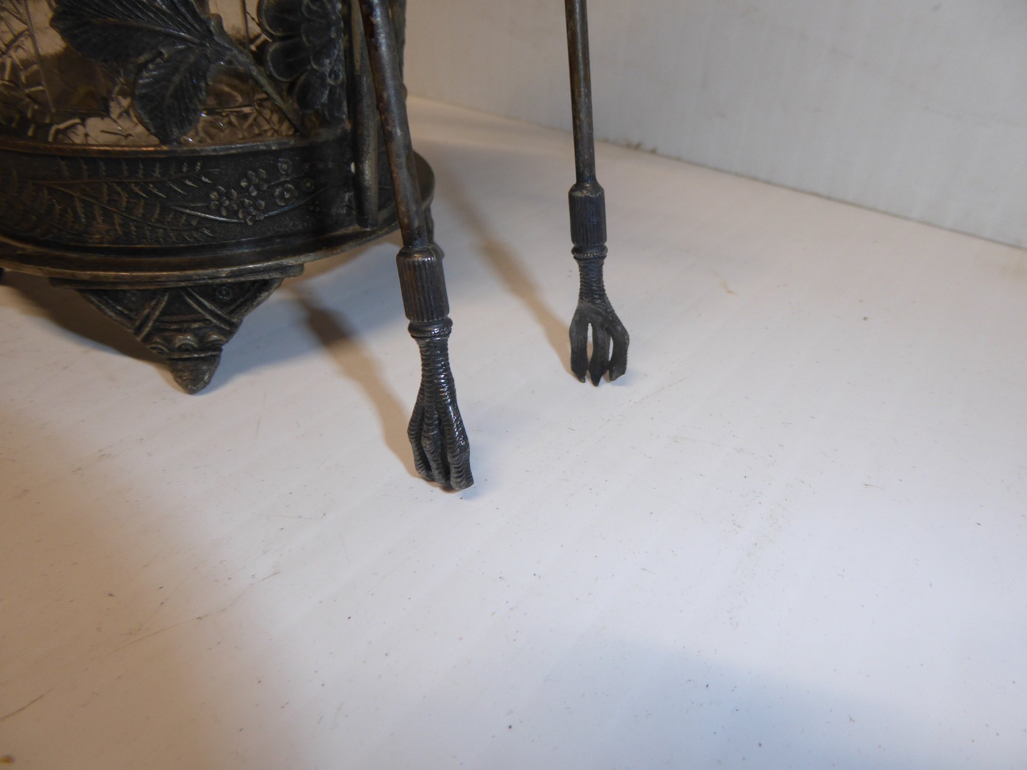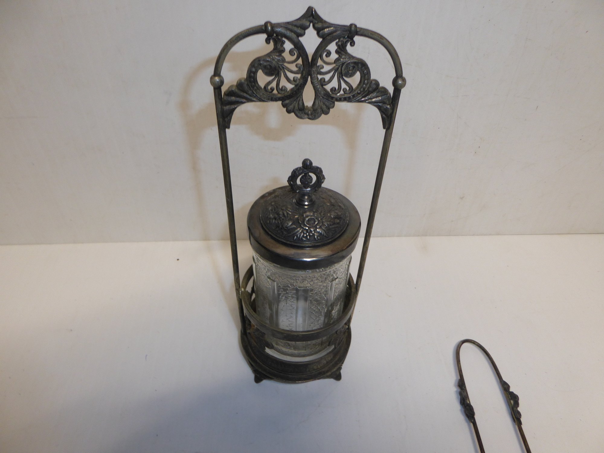 Antique Victorian Pickle Jar With Claw Tongs