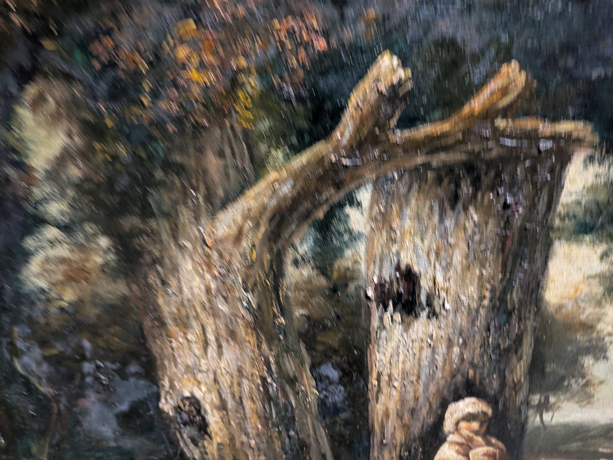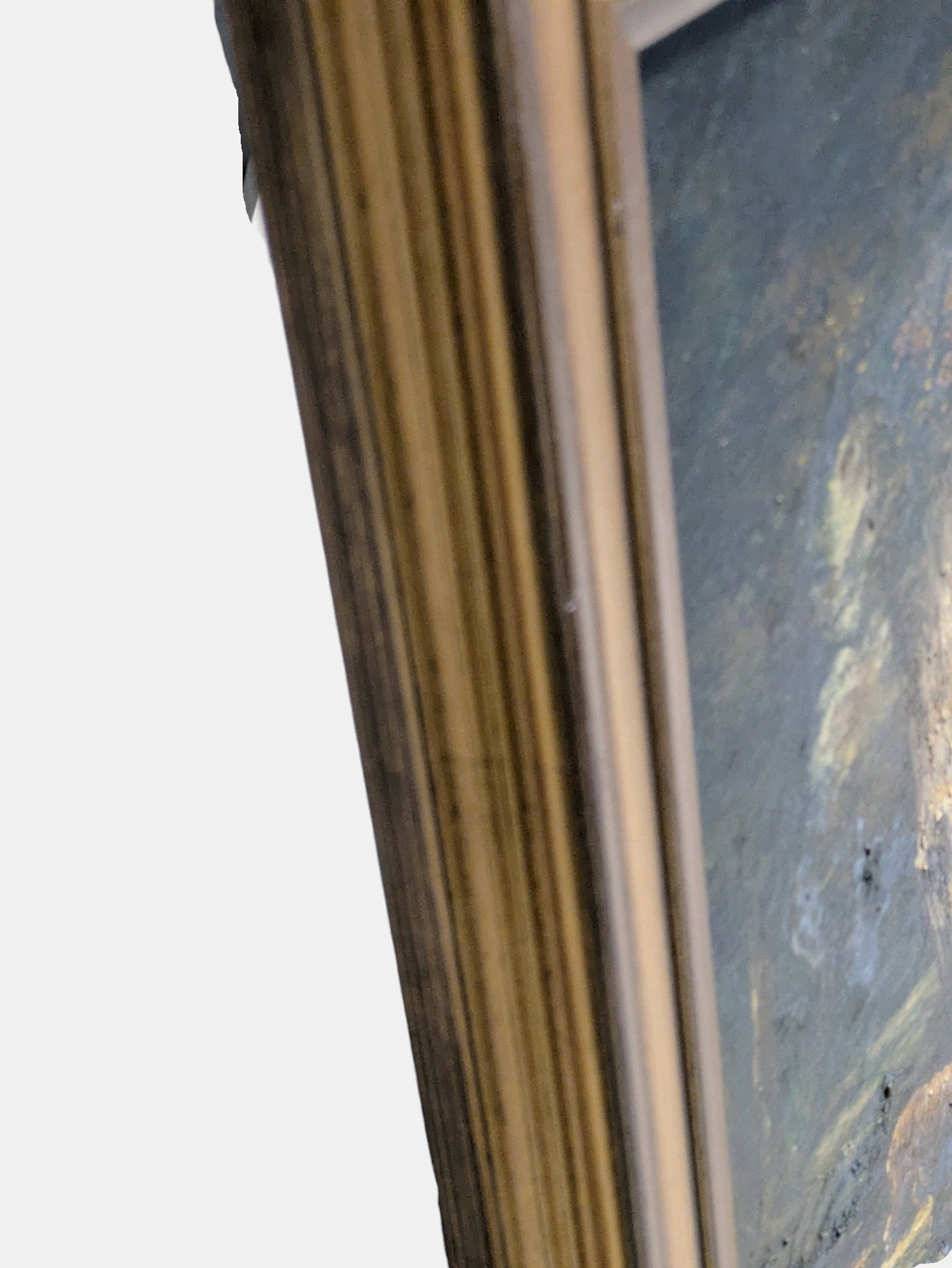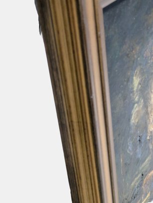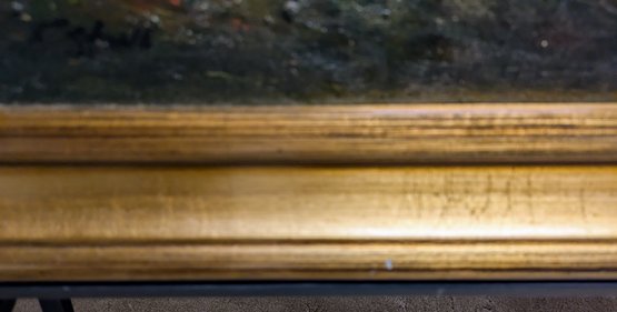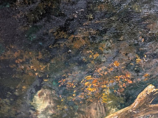 The style and subject matter are heavily influenced by 19th-century French artists like Charles-Émile Jacque. Depicts a standing shepherdess by a tree and sheep drinking from a pool, under large oak trees. Framed in a beautiful double-gilded gold frame made of wood and acrylic. There are some chips on the frame, but the painting is in excellent condition. Please see all photos as part of the description and condition. 6"H x 9.5" x 13.5"