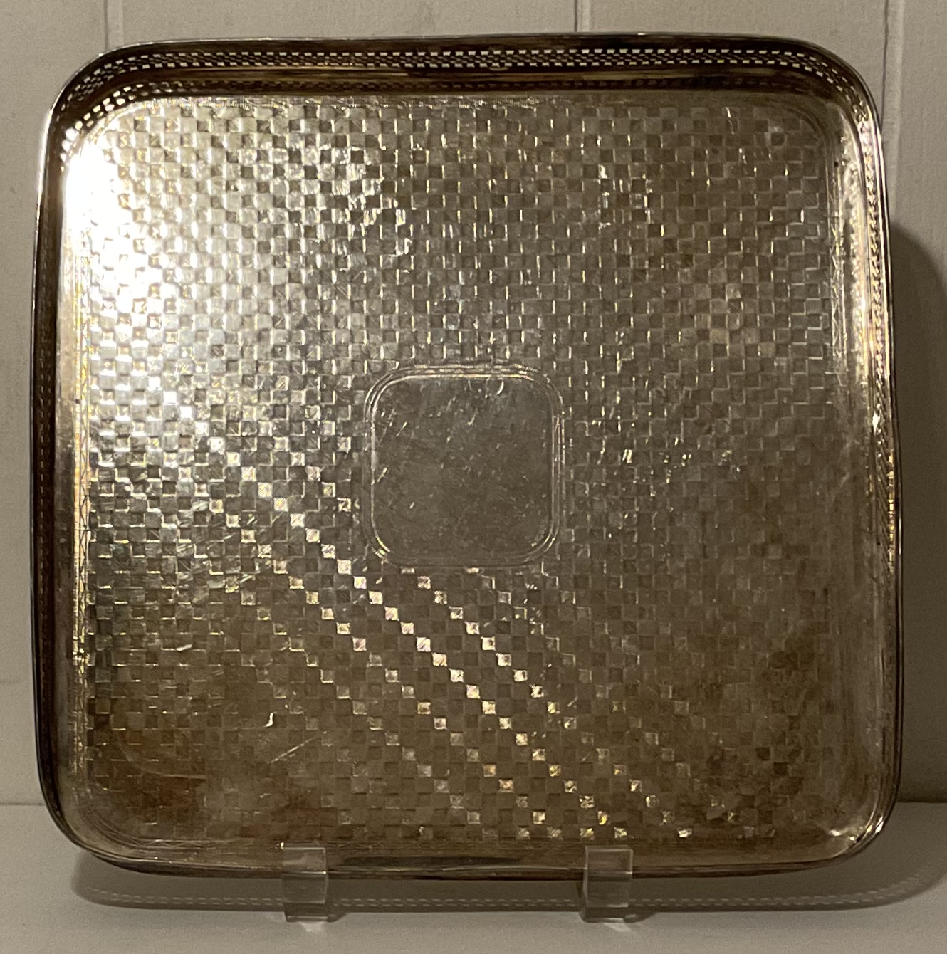 Antique, Vintage Gated Square Silver Plated Tray.
