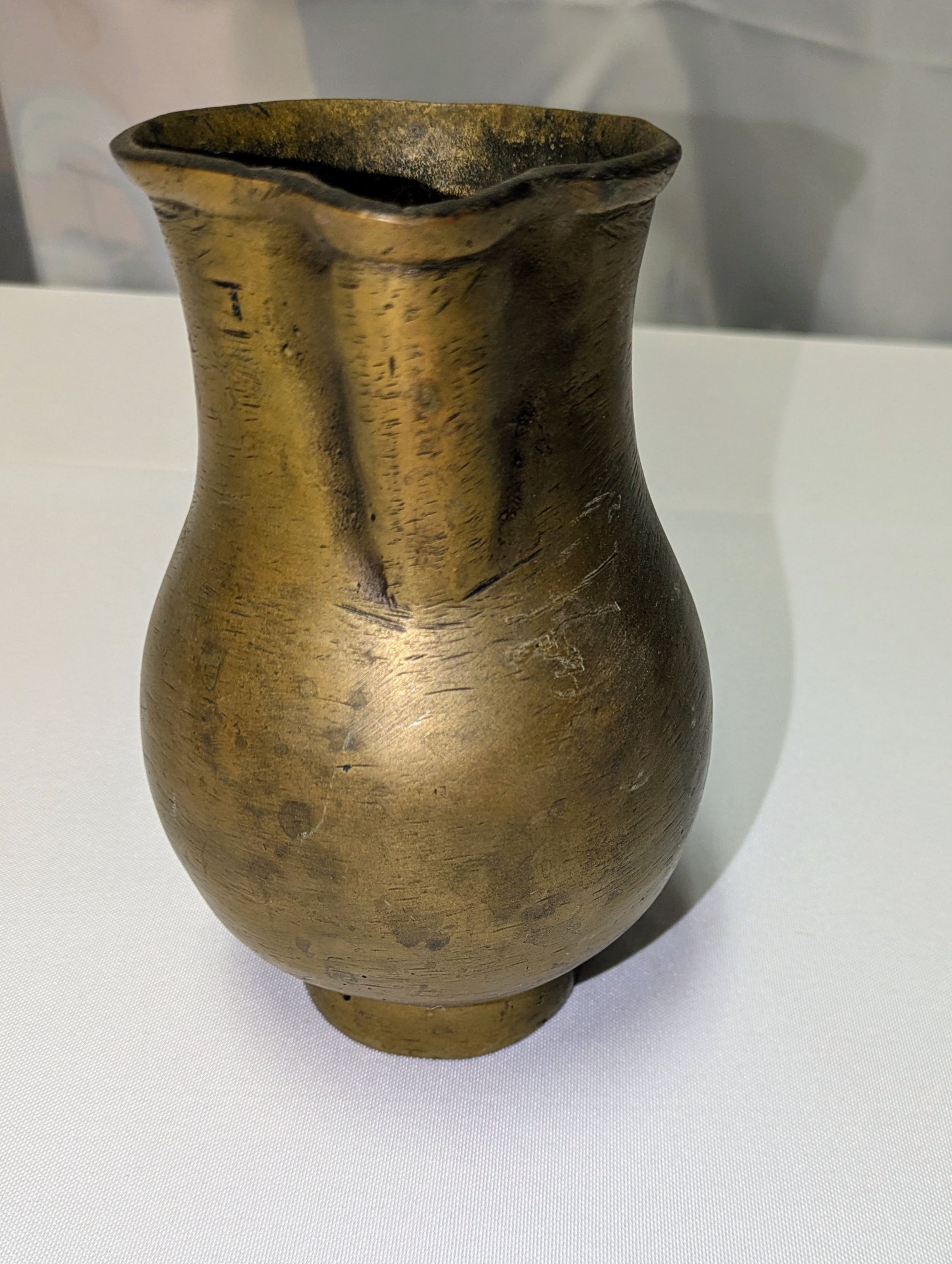 Simple and Sleek Design. Normal marks and wear, consistent with age and brass. Overall, Very Good Antique/Vintage Condition. Please see all photos as part of the description and condition. 6.5"H x 4" Diam. Base