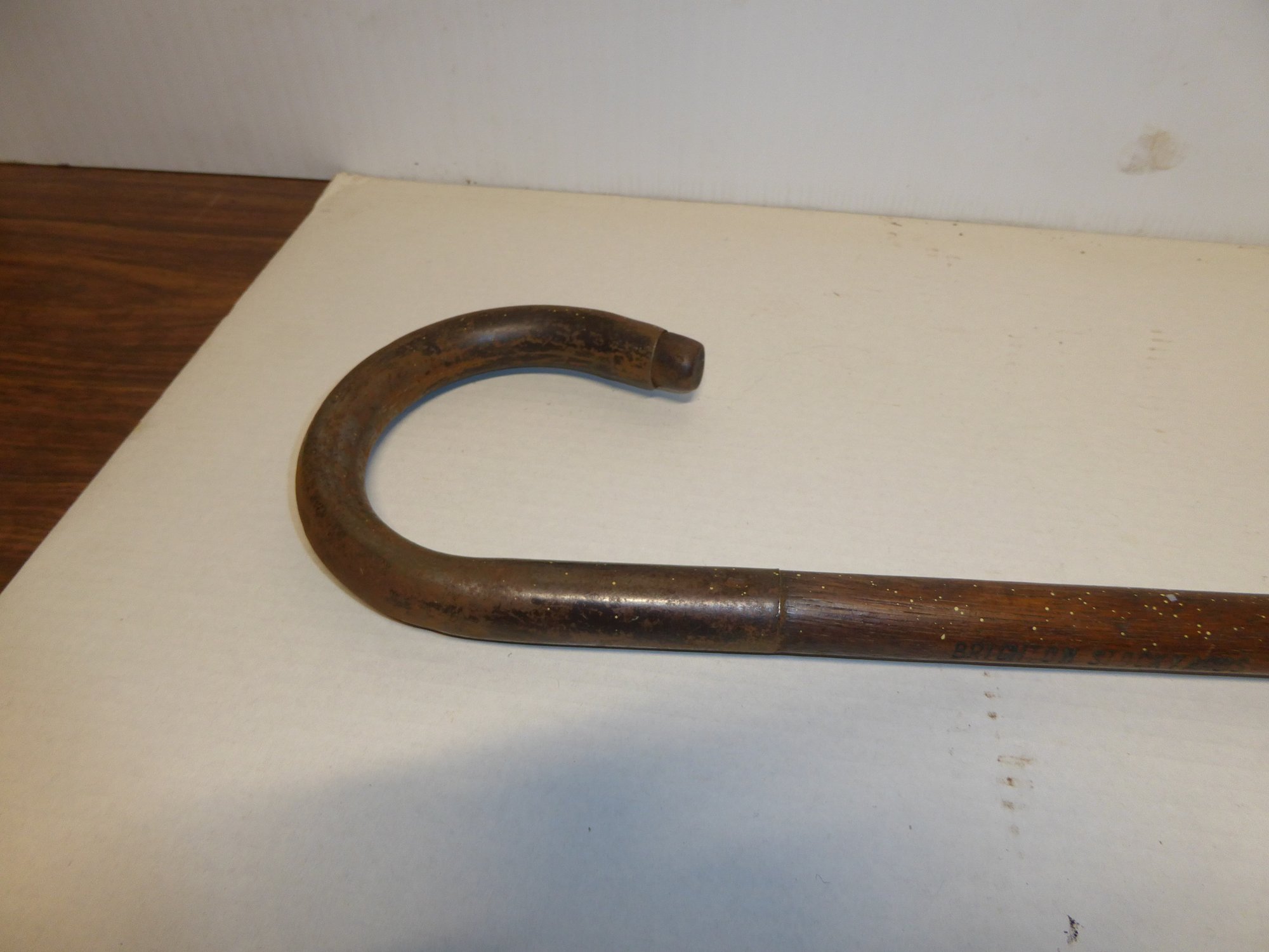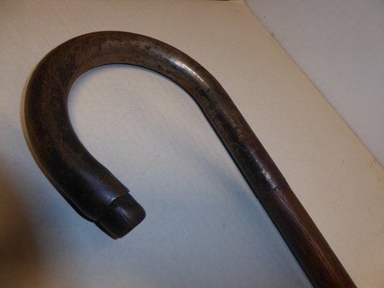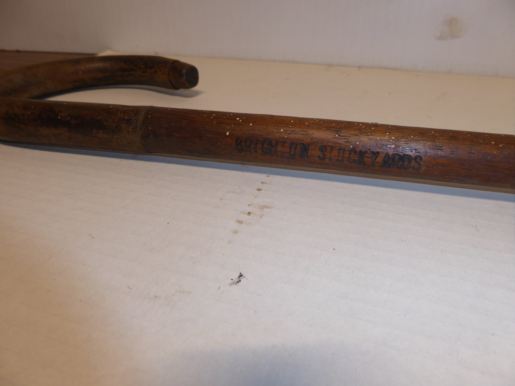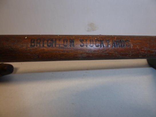 Antique Wooden Brighton Mass. Stock Yard Cane With Metal Curved Handle