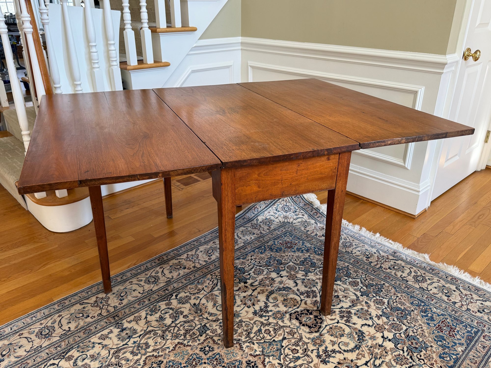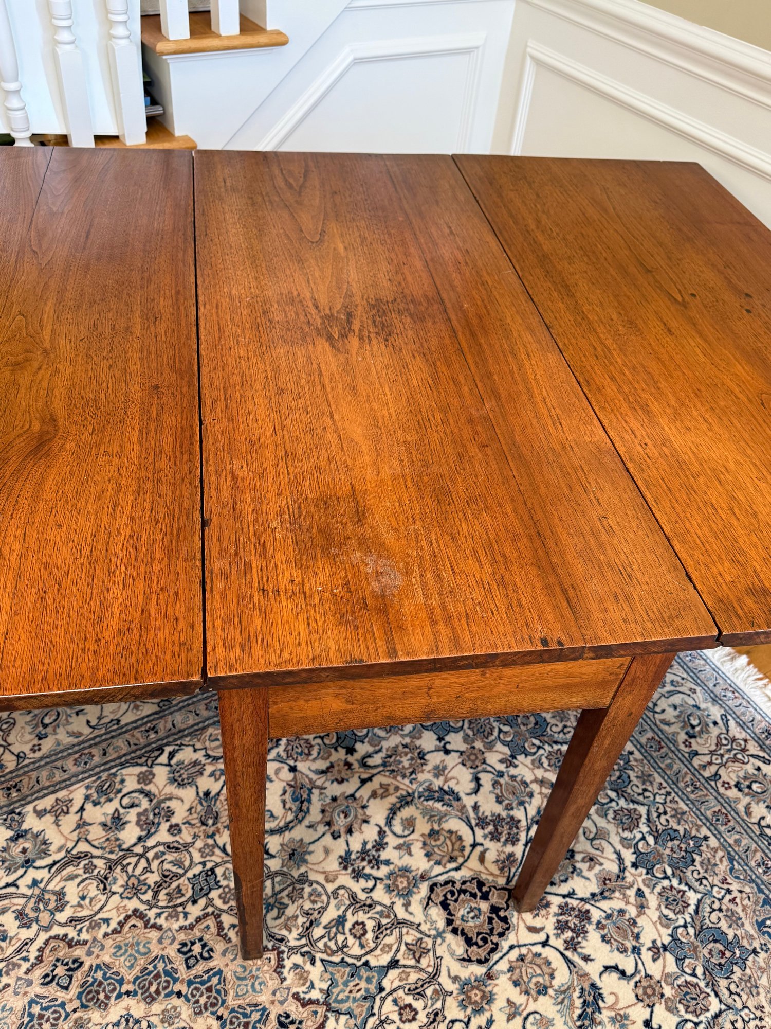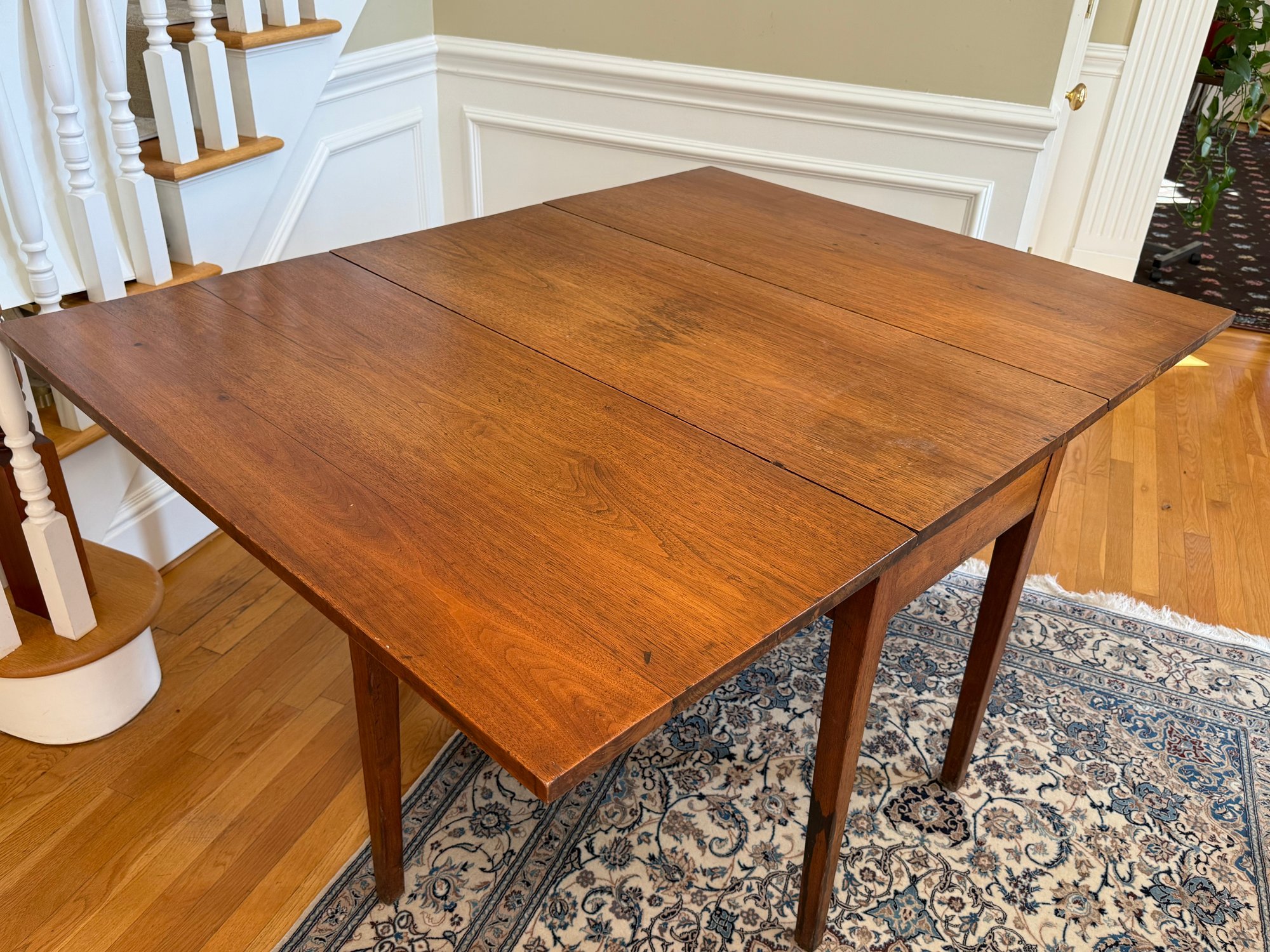 Antique Wooden Drop Leaf Dining Table with Tapered Legs