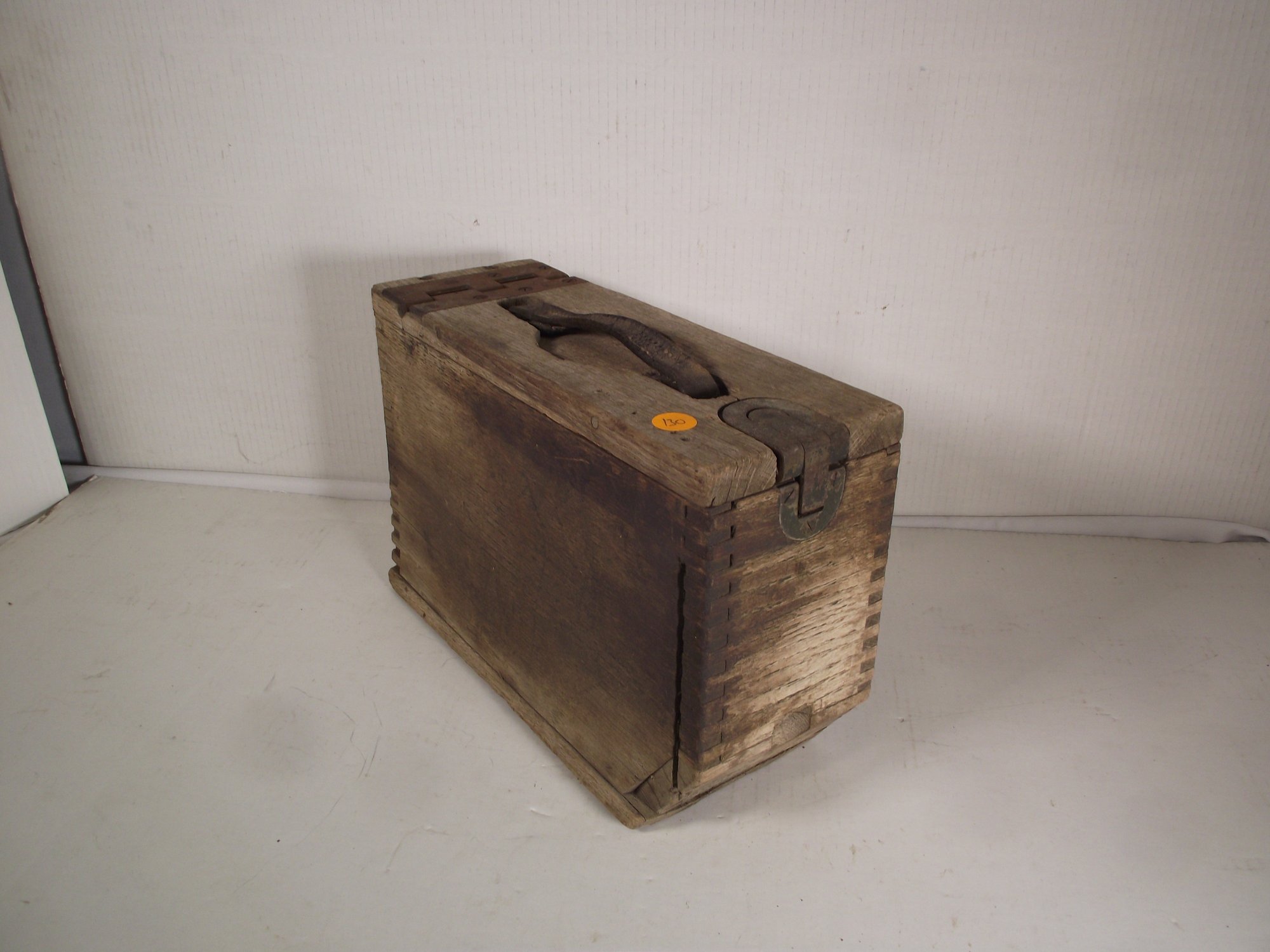 Antique WWI Wooden Dovetailed Ammo Box With Leather Strap