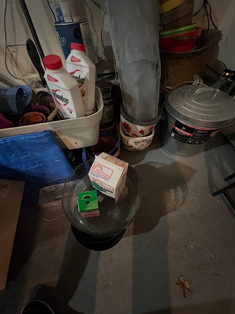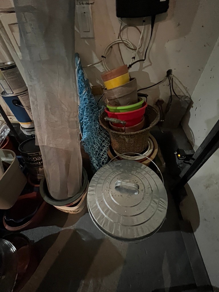 garden lot, pots, buckets, etc.