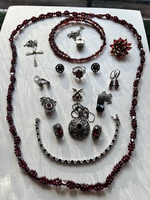 Garnets, Sterling, Beads, Cross, Chains, Drop Earrings