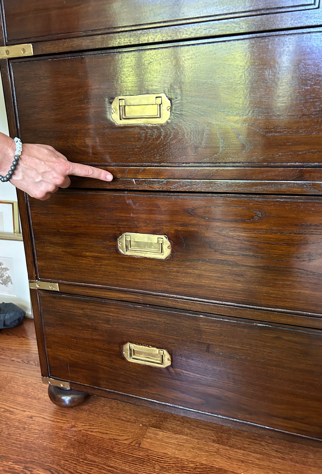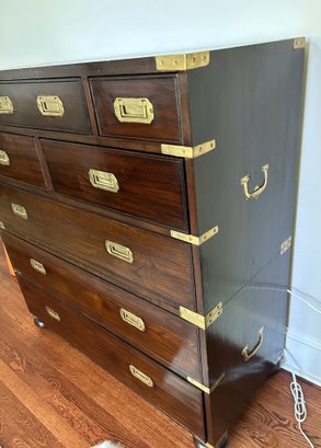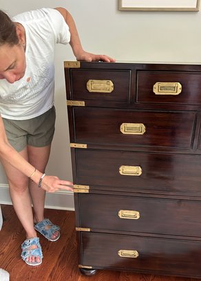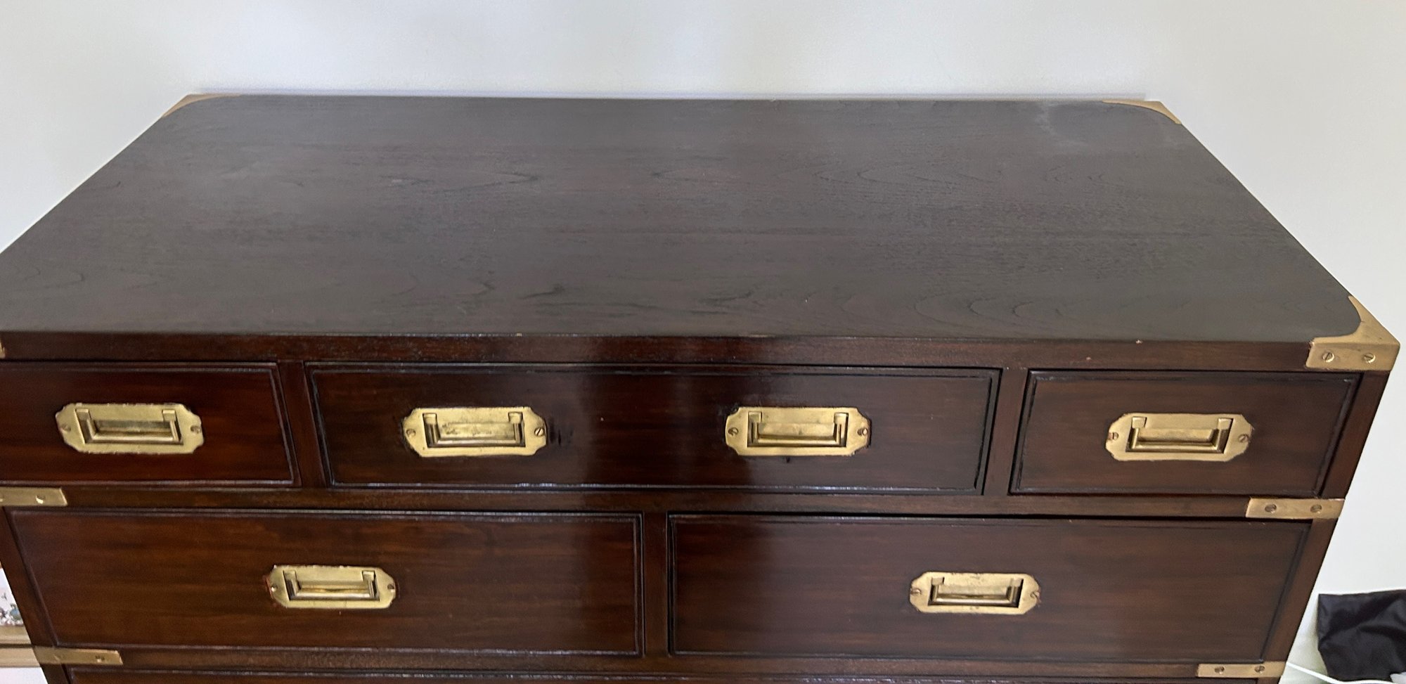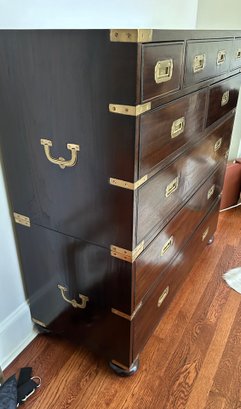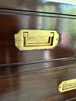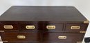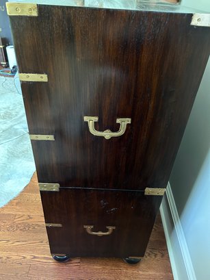 Use together or individually! Rich wood (believed to be Walnut or Mahogany) with brass details and pulls. Finished back. Great condition.