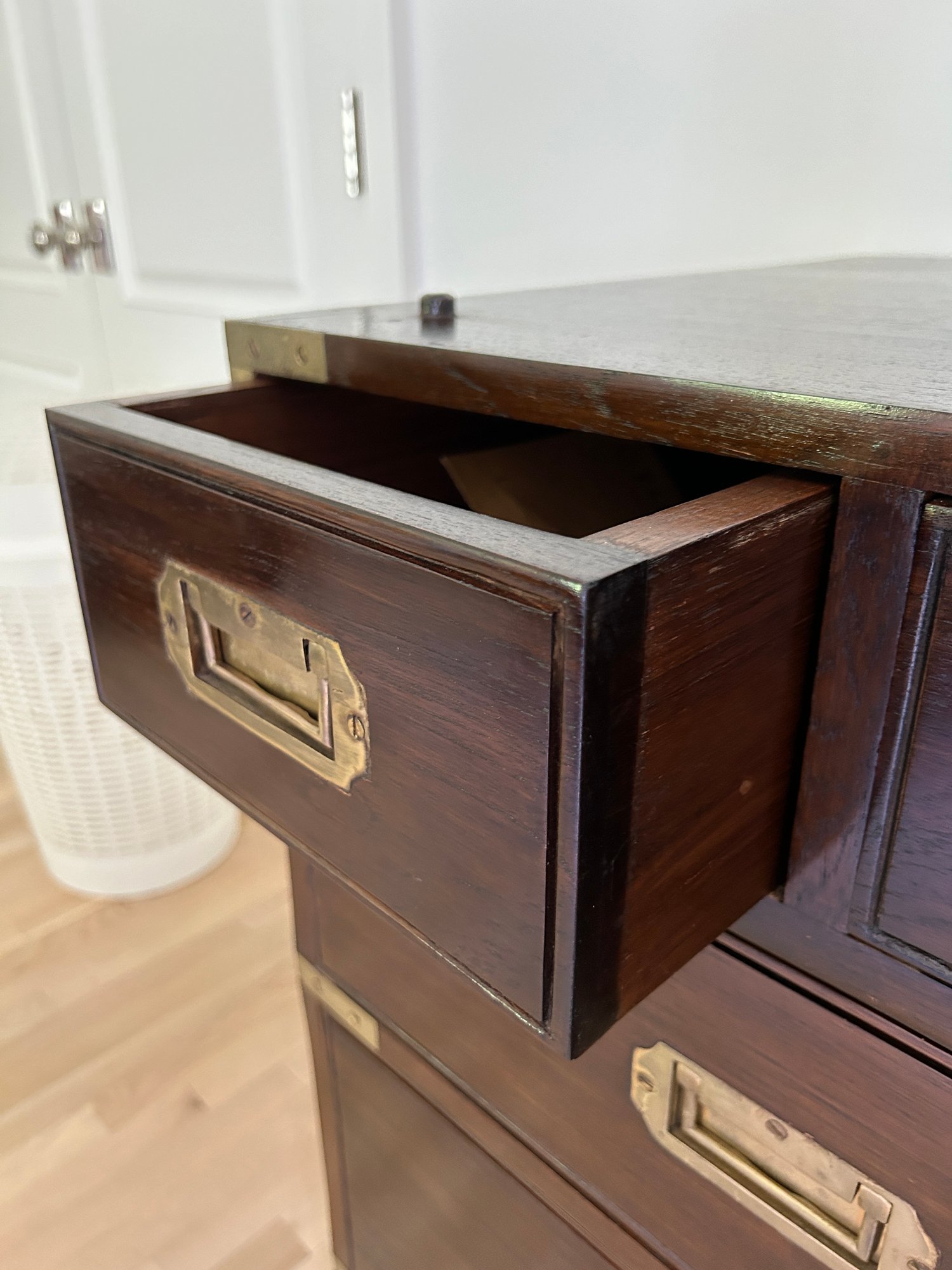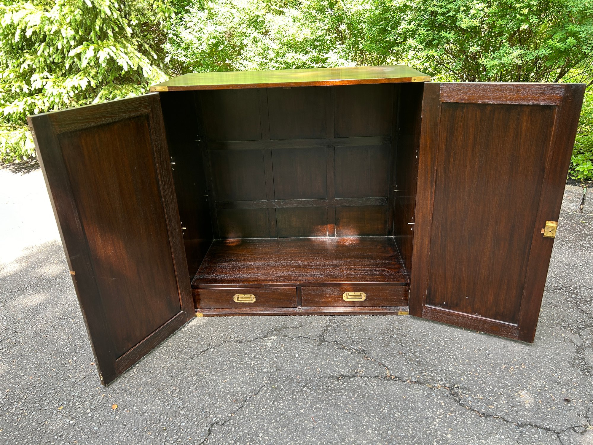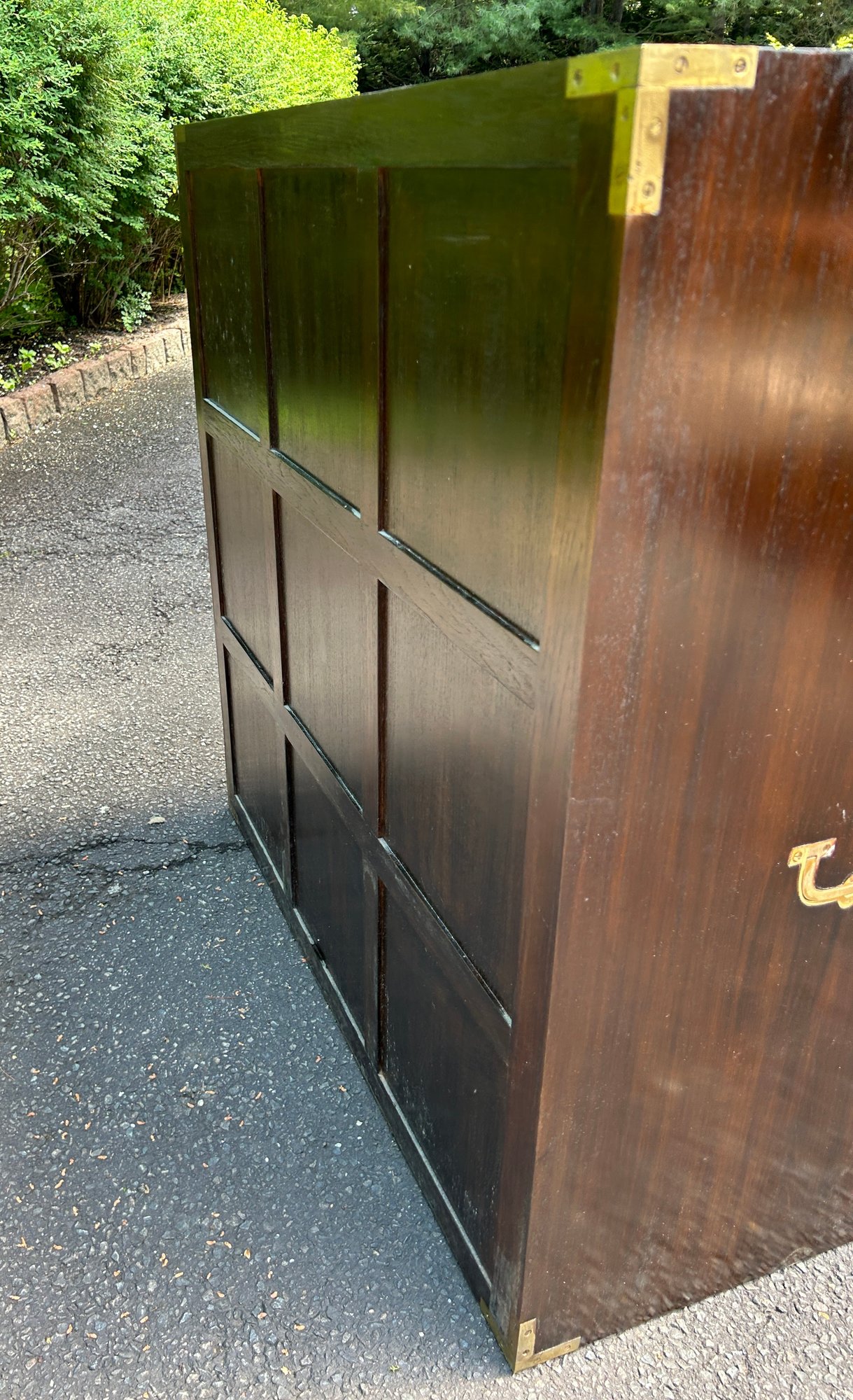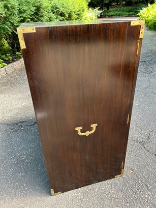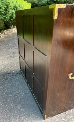 Use together or individually! Rich wood (believed to be Walnut or Mahogany) with brass details and pulls. Finished back. Can be used together or separately.
