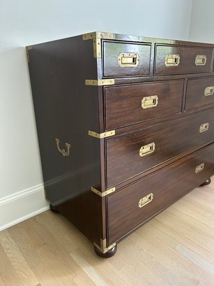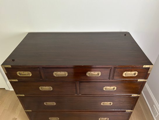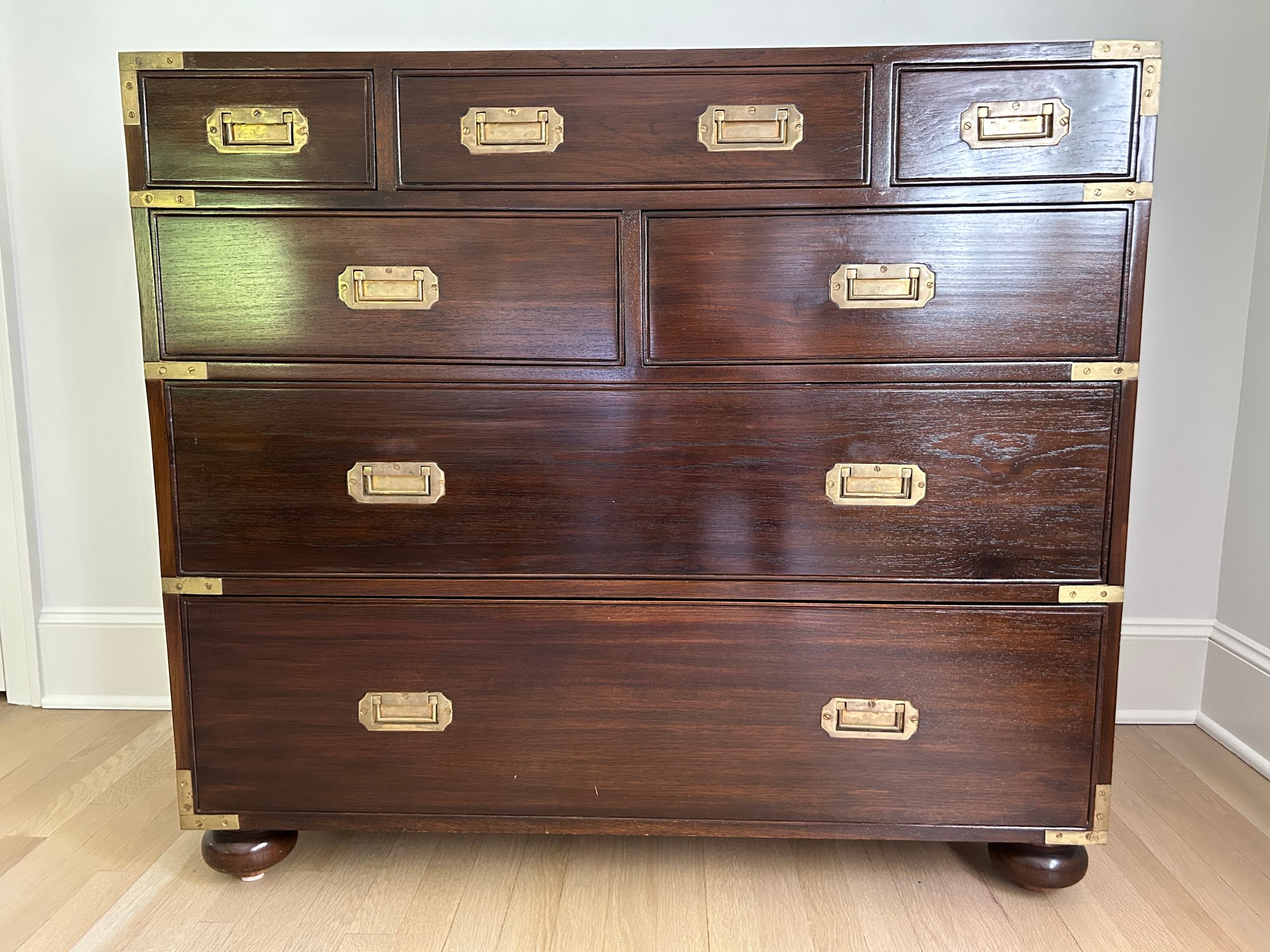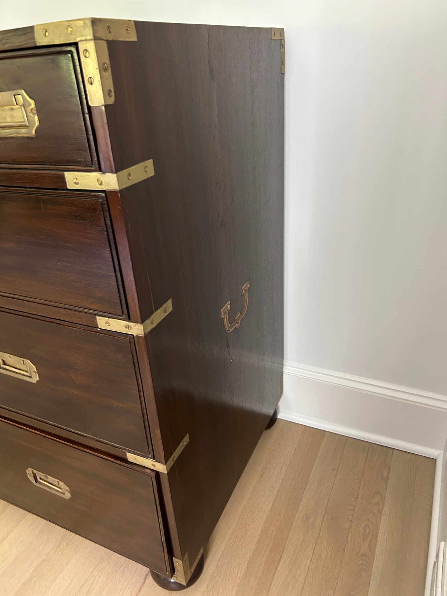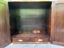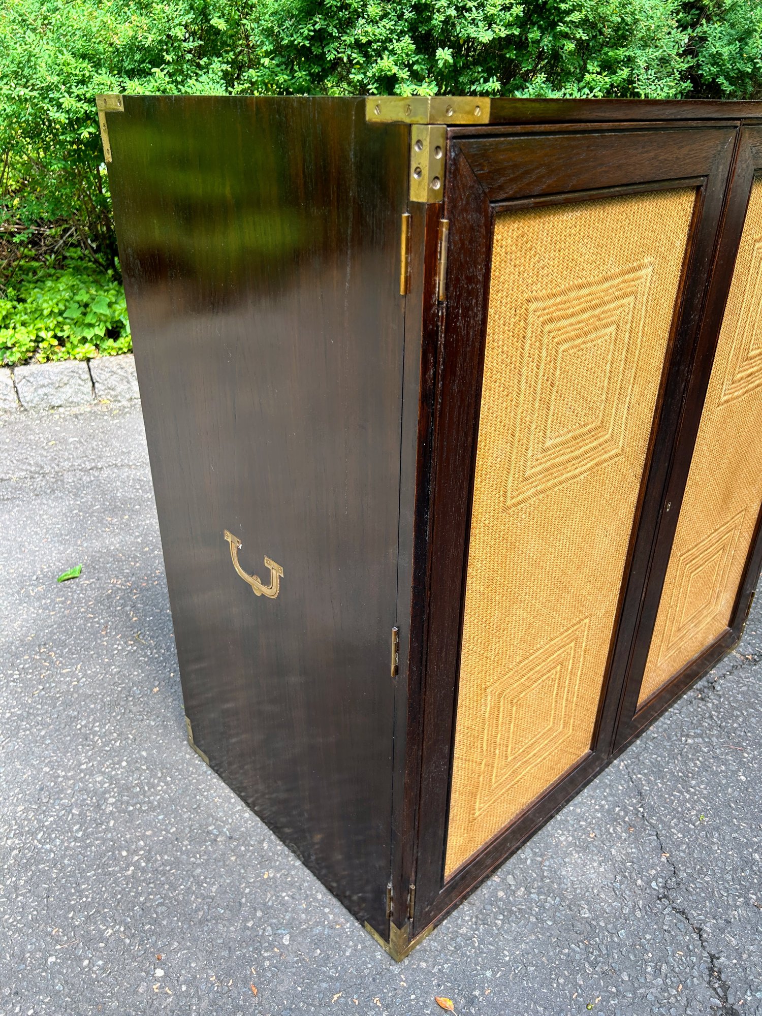 Use together or individually! Rich wood (believed to be Walnut or Mahogany) with brass details and pulls. Finished back. Can be used together or separately.