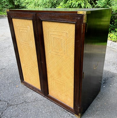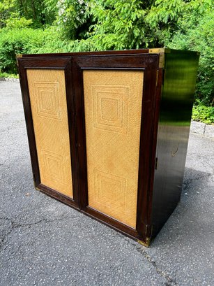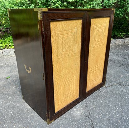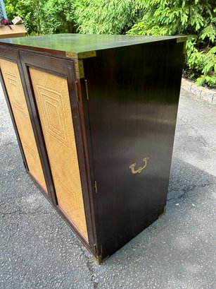 Hutch with woven door panels (no key and must be opened by pulling from top lip; very light wear)