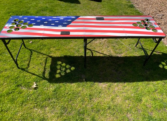PARTYPONG 8 - foot folding beer pong table with US Flag graphic.