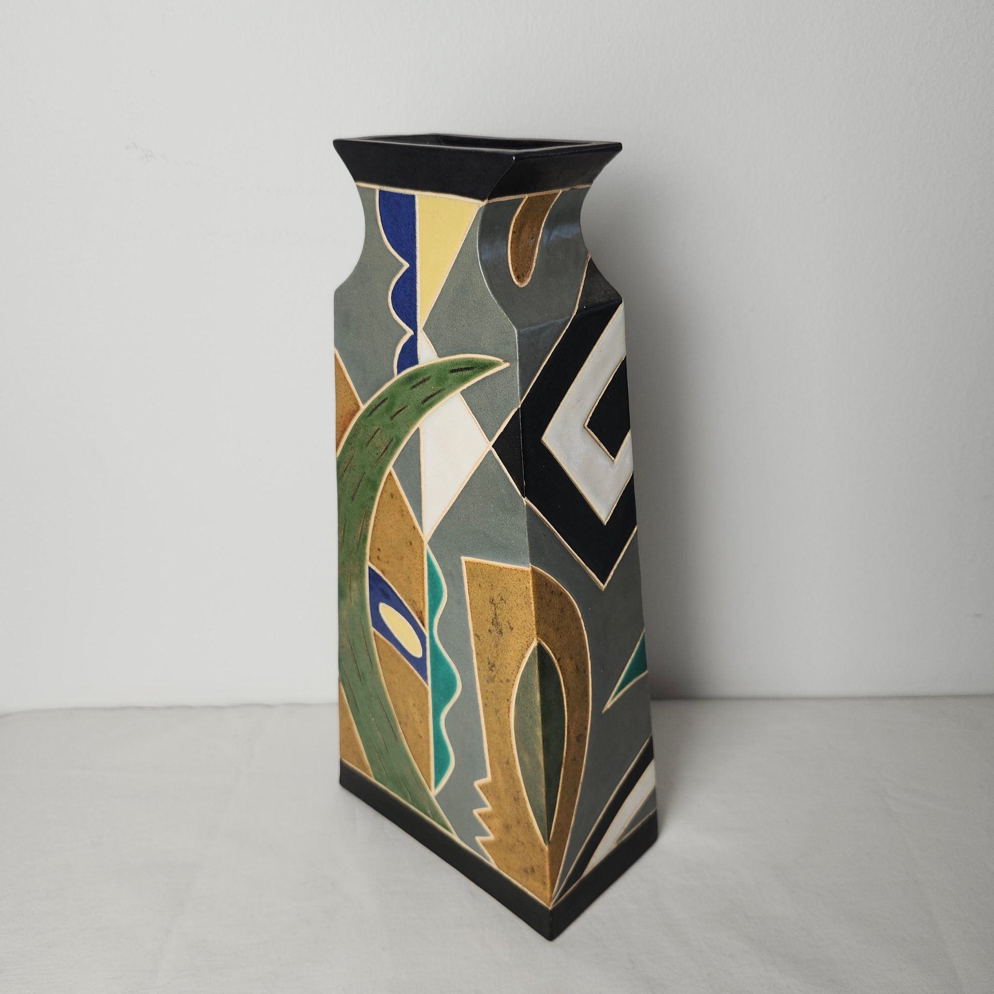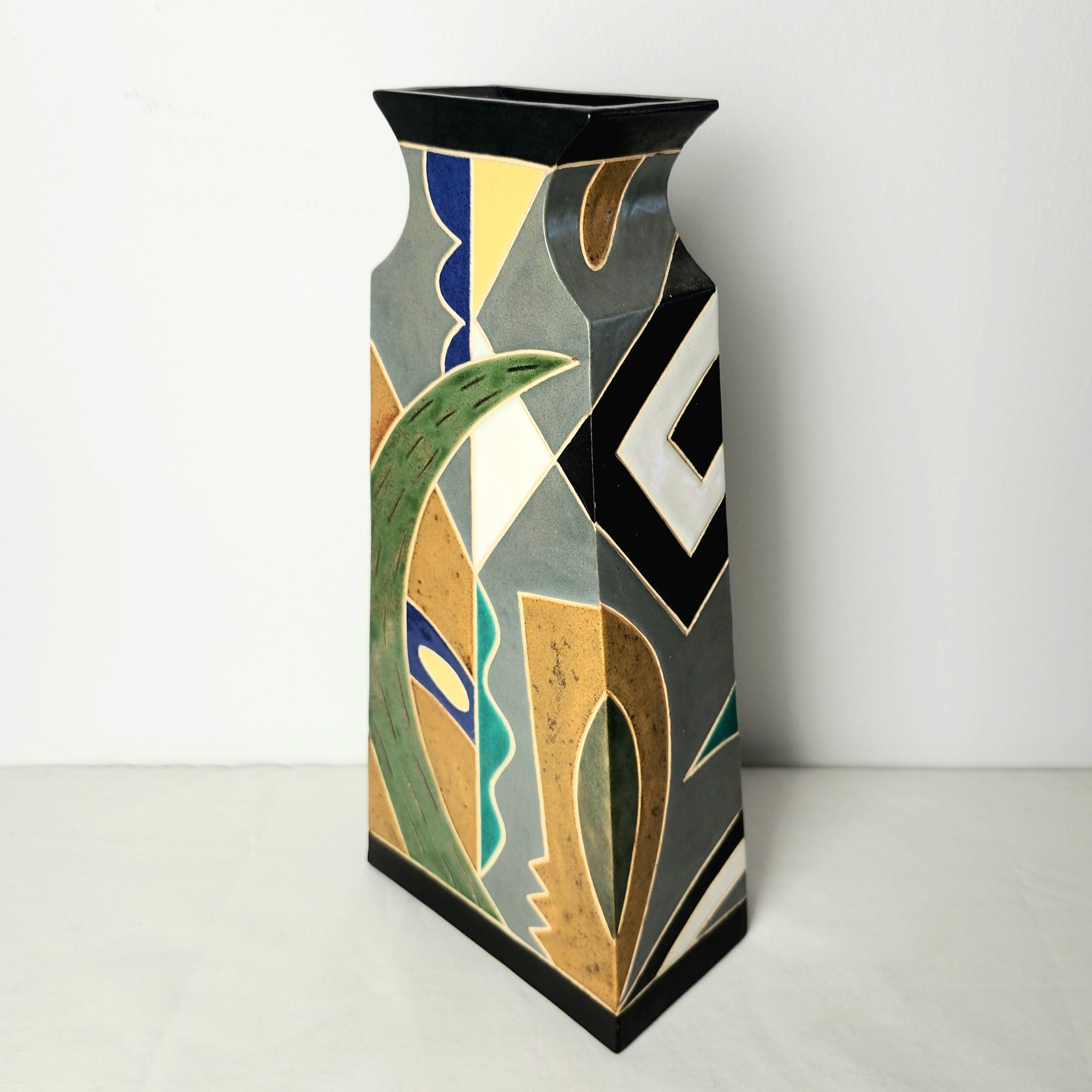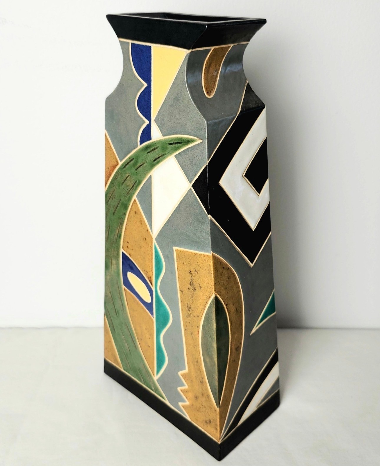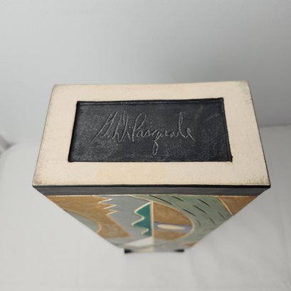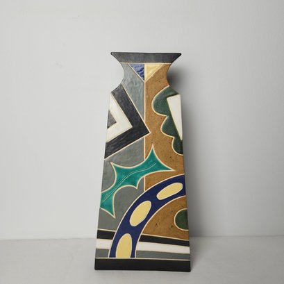 Fantastic slab built studio pottery vase by NYC potter Gary di Pasquale.