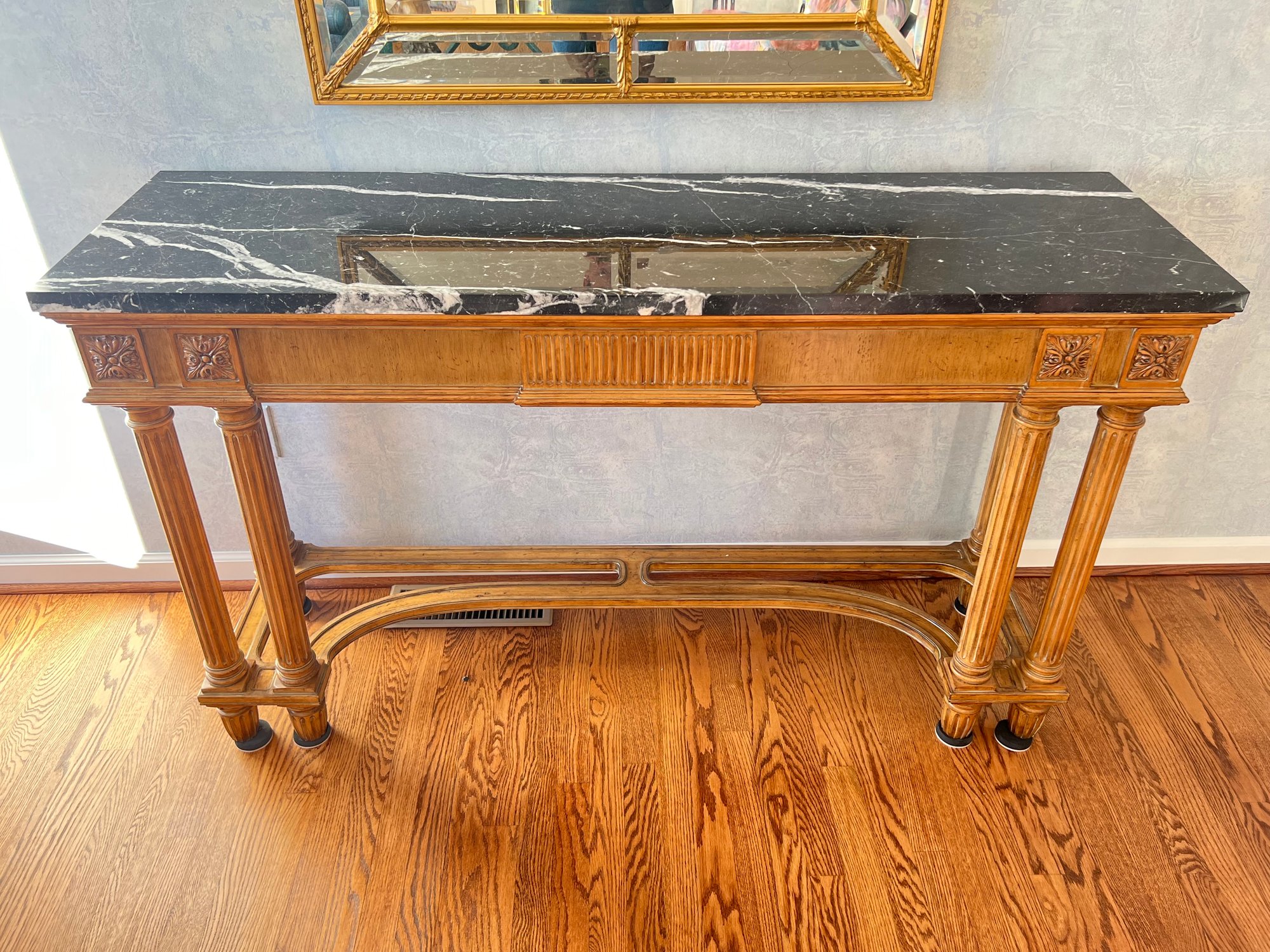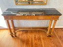Sold as is, granite top is smashed. 60" width, 18" depth, 35" height. Looks good from 10 feet away but its smashed. Needs a new piece of stone.