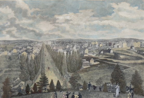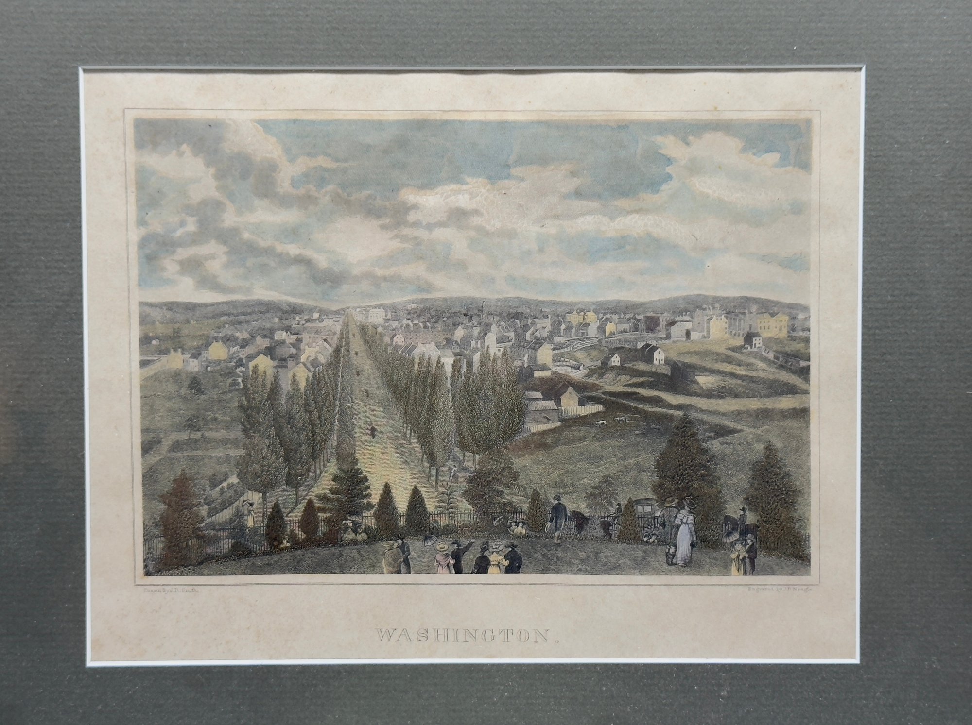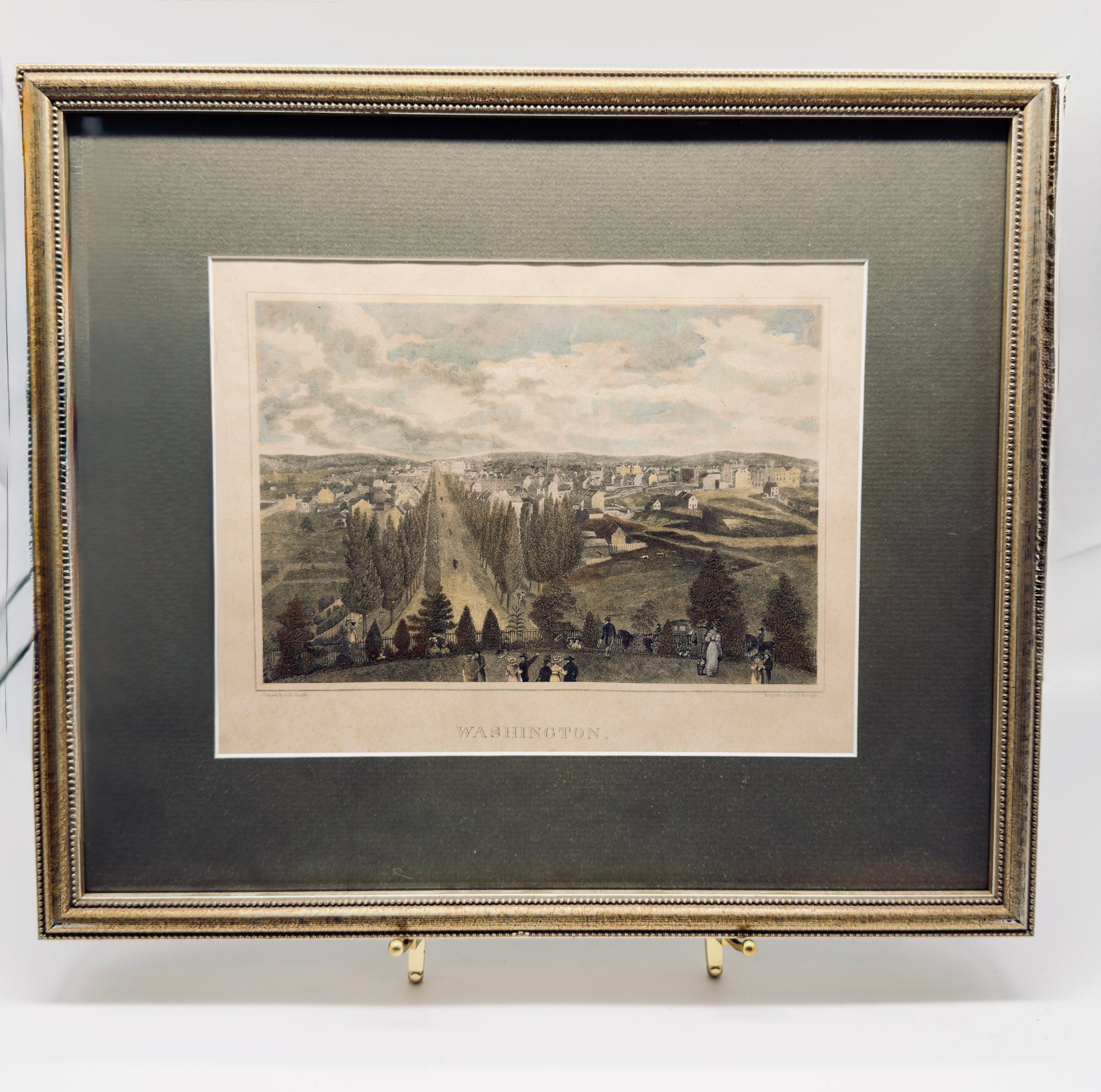 This sweet vintage image looks at Washington's past as rural landscape. Framed in a beaded wood framed in a brushed silver/gold finish. Size 14 x 12