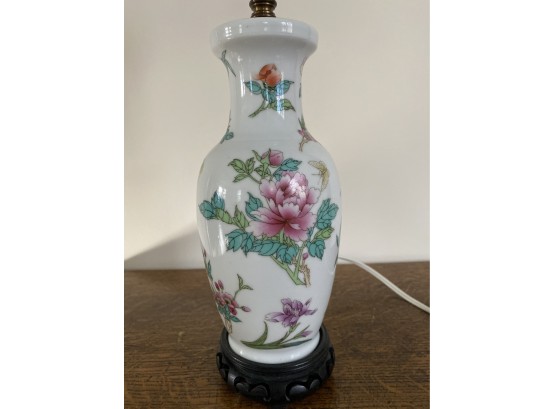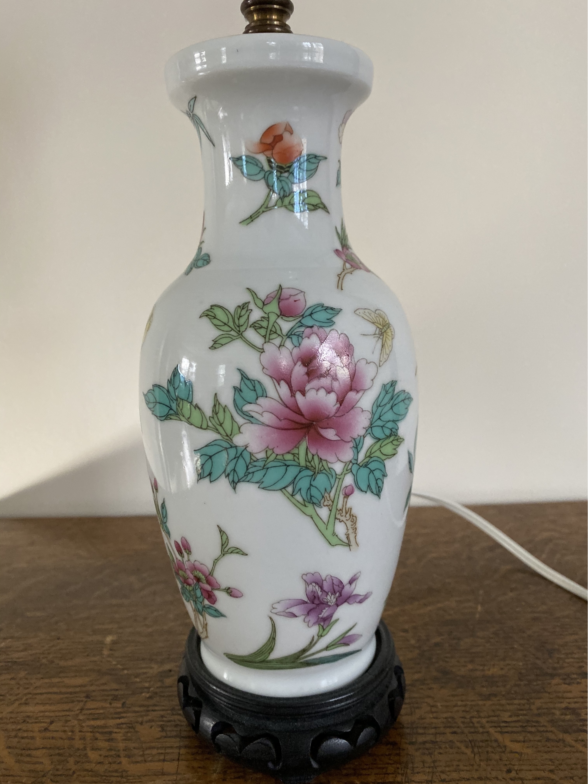 This colorful lamp features a beautiful design perfect for anyone who loves floral scenery or eclectic decor styles. Needs shade.