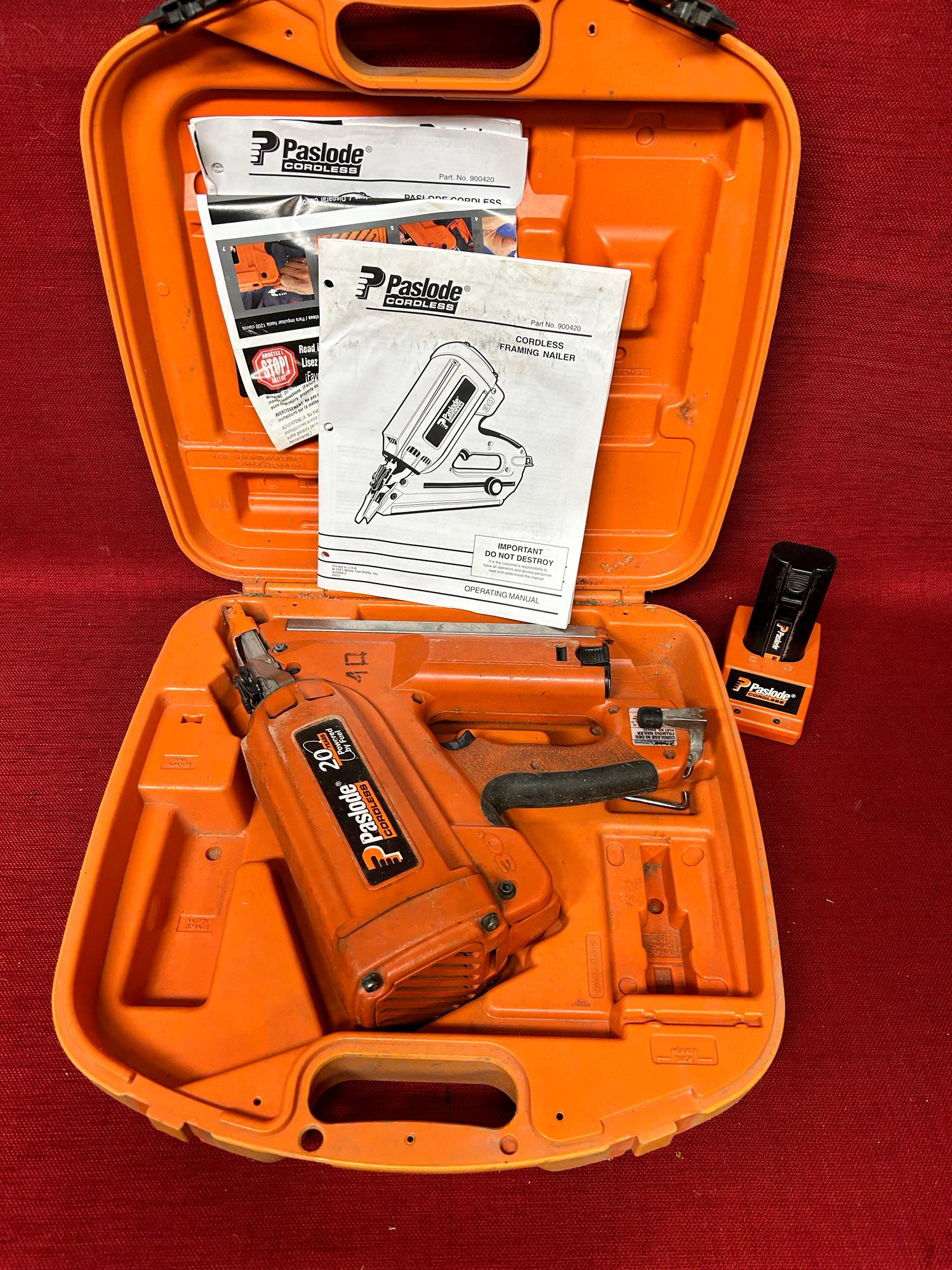 Includes framing gun, case, instructions, charger & battery ( missing cord for charger). **NOT tested**