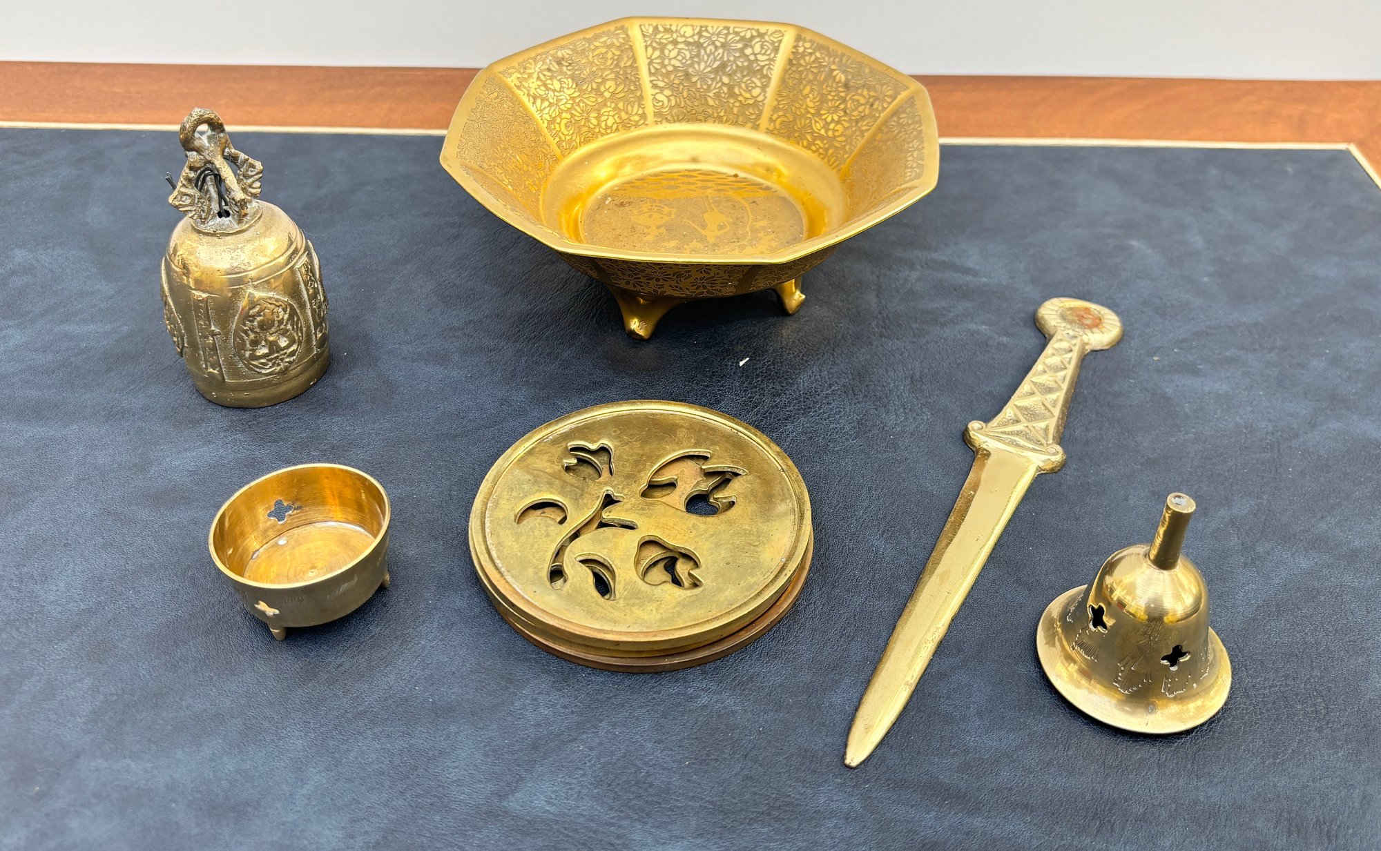 Bell, letter opener, coasters