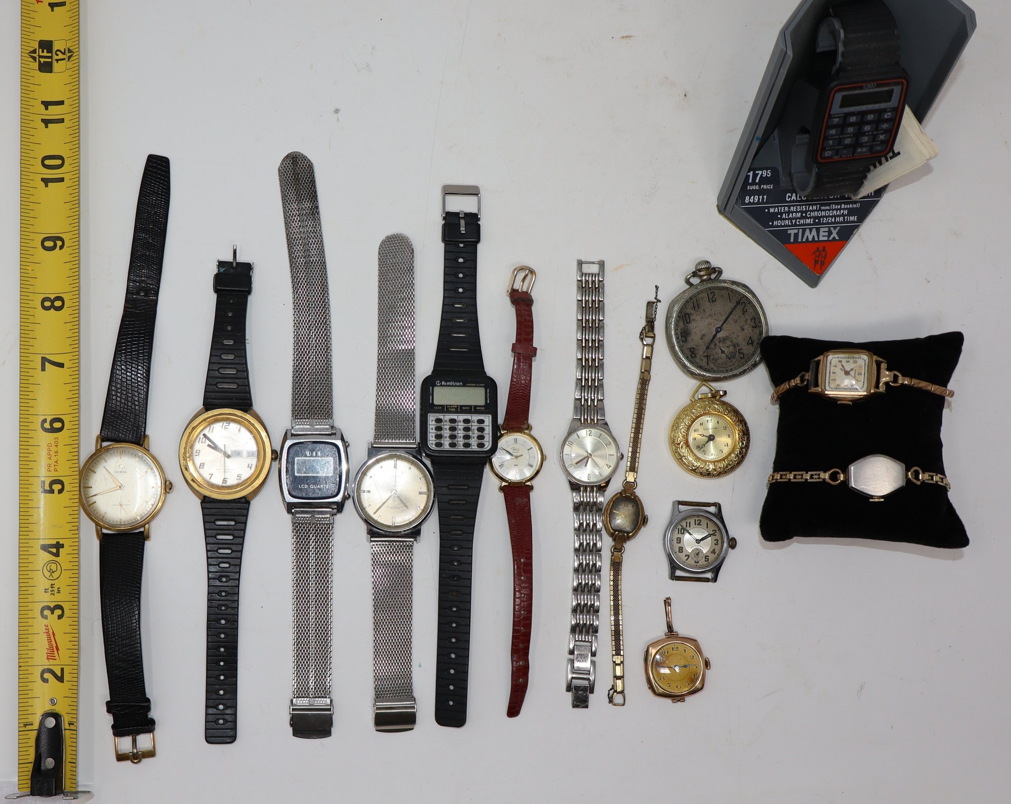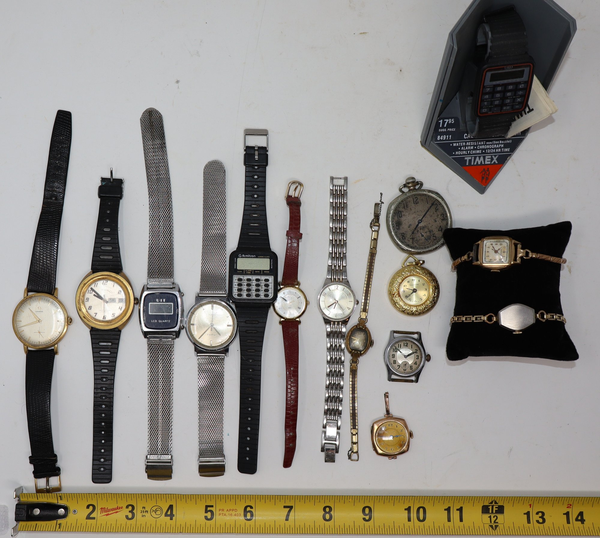 Brands include, Timex, Hadley, Omega, Armitron, Geniale, Crawford, Helbros, UIT, Lucerne, Waltham Premier & Elgin