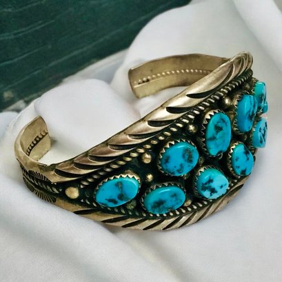 Native American Silver and Turquoise Cuff Bracelet