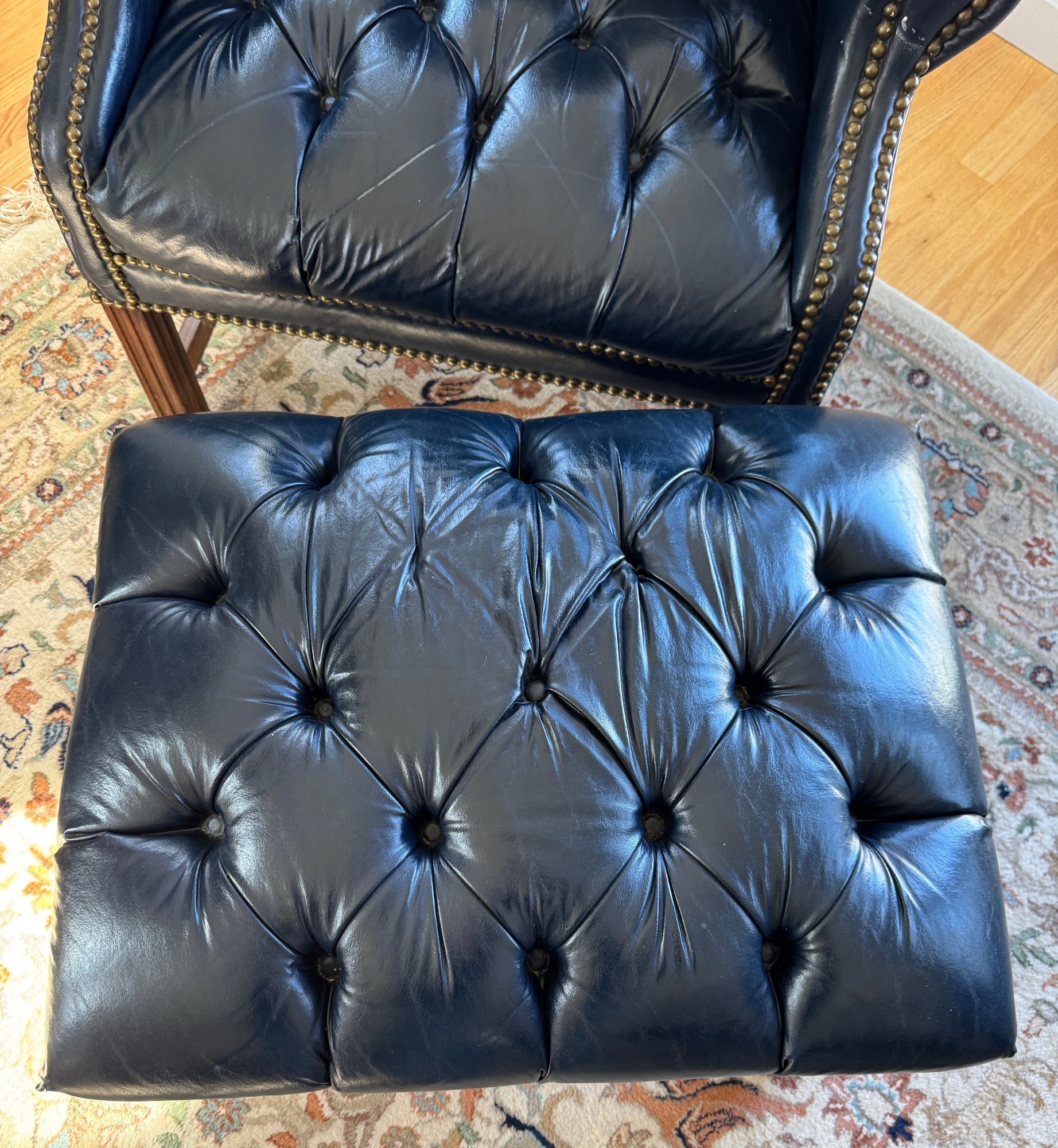 ottoman- 26" x 20" x 15"h missing button, rips on corners, used condition