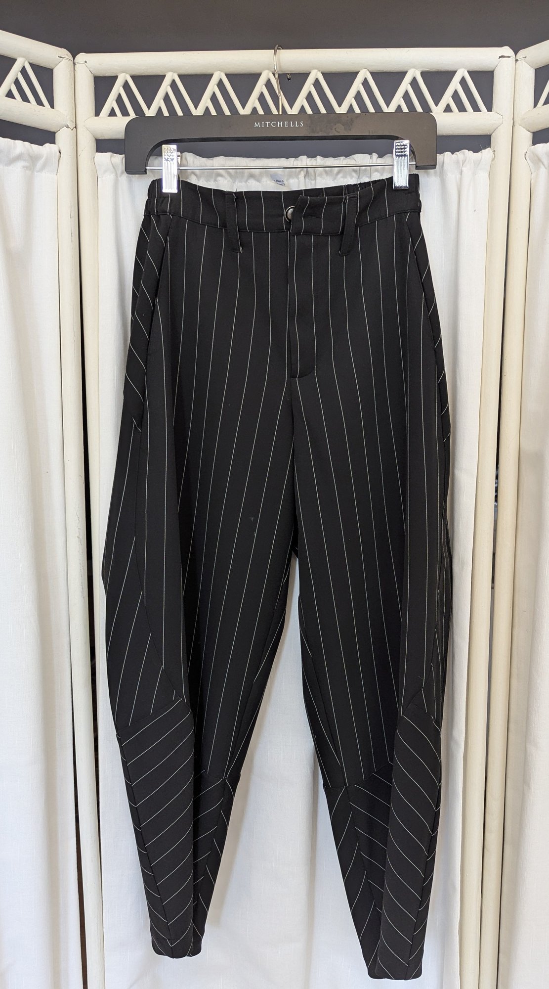 Awesome Designer Ruti Pinstripe Black And White Tapered Trousers (Size 6)